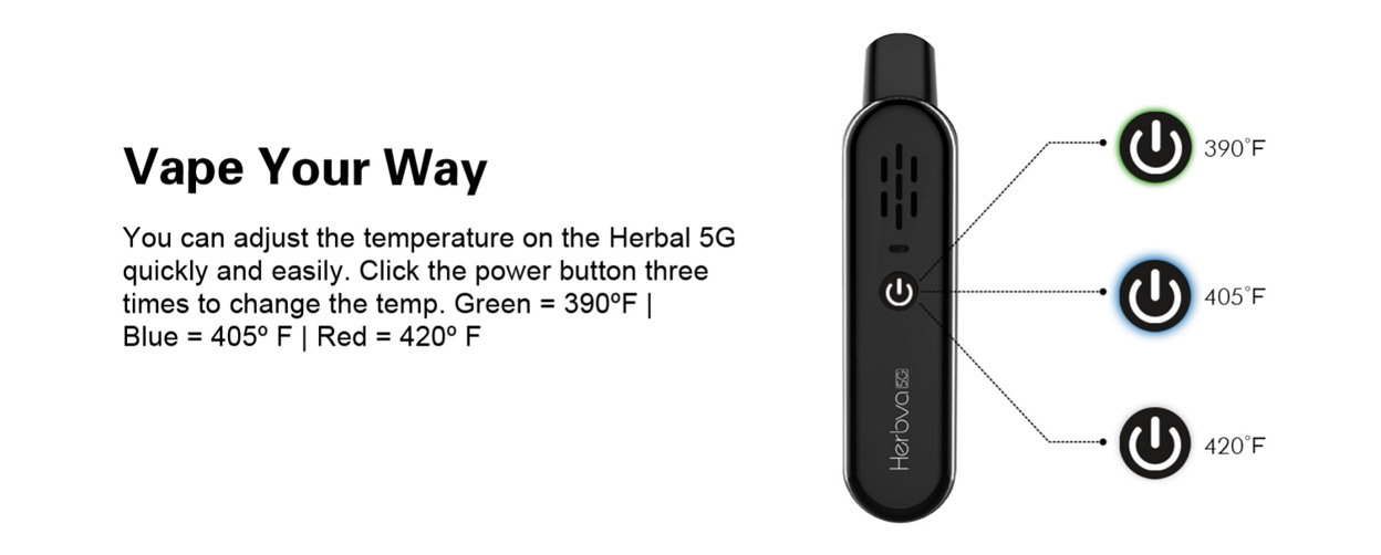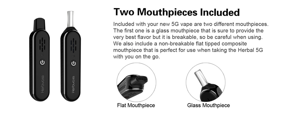 Airistech Herbva 5G Vaporizer Kit 1000mAh is the most mini Drying vape pen in the world. It provides you with 2 optional mouthpiece(flat mouthpiece for portability, glass mouthpiece for better taste), 3 of most popular temperature options for your simple operation, and the healthy ceramic heating chamber, which produces pure vapor. This kit will bring you into the new vaporizer generation for its extreme portability, easy operation and great taste.