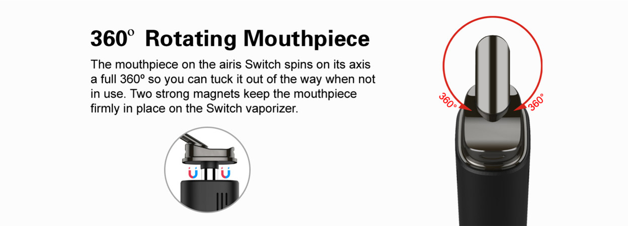 Airistech Switch 3-in-1 Vaporizer Kit is a premium portable vaporizer which is designed for wax, Drying and oil. All of them have specialized bullet to fit into the vaporizer. It utilizes unique 360 degree rotational mouthpiece to make vaping easier. It only needs 30s to heat up, do not need to wait long time. In addition, the Switch vaporizer kit comes with vibration notification function. Equips with ceramic chamber, you will enjoy purer vapor. The device also features 3 temperature settings for satisfying your vaping demands.