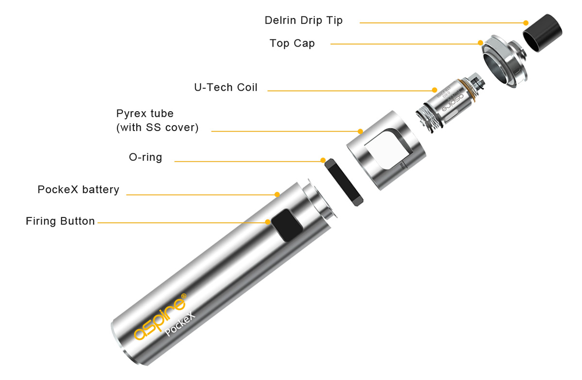 Being just a bit shorter than the iPhone 5s, the Aspire PockeX is the ultimate pocket All-in-One (AIO) device. Packed with a 0.6ohm stainless steel Nautilus X U-Tech coil, the PockeX is a sub-ohm device. The PockeX has a wider drip-tip and larger top-airflow allowing for increased vapor production.