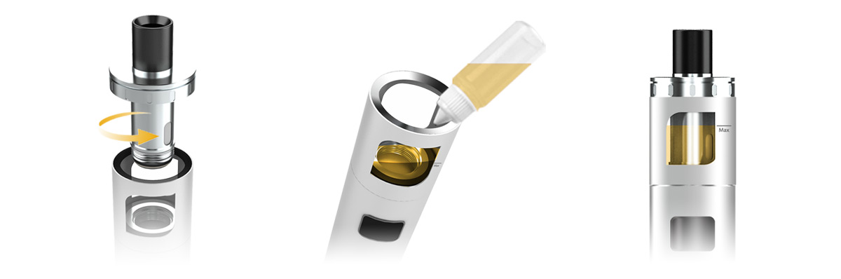 The PockeX introduces top-filling in an innovative new way. The atomizer screws into the top cap instead of tank bottom. This allows you to replace the atomizer without draining E-Liquid from tank. PockeXs top fill design allows you to drip, drop or pour E-liquid into the 2ml tank.