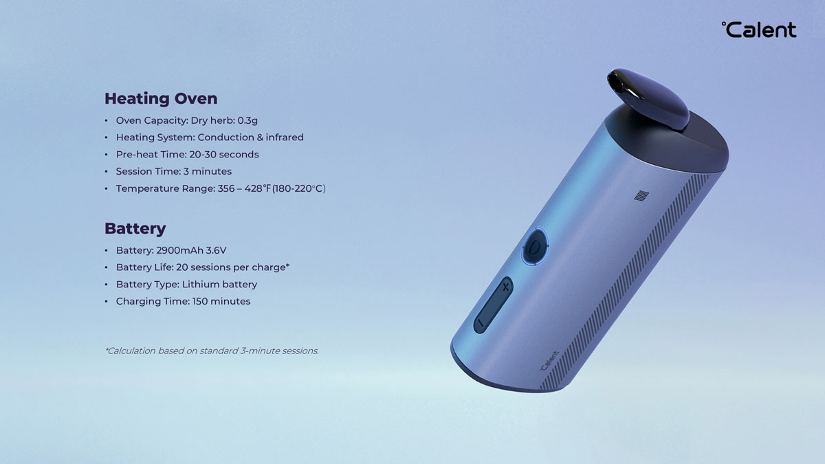 Catering To Those Who Wish To Access Smooth, Dense Vapors With No Hassle, Calent Is Engineered With Dual Heating Technology That Generates More Flavorful Hits And Thoroughly Releases The Essences Of Your Material.