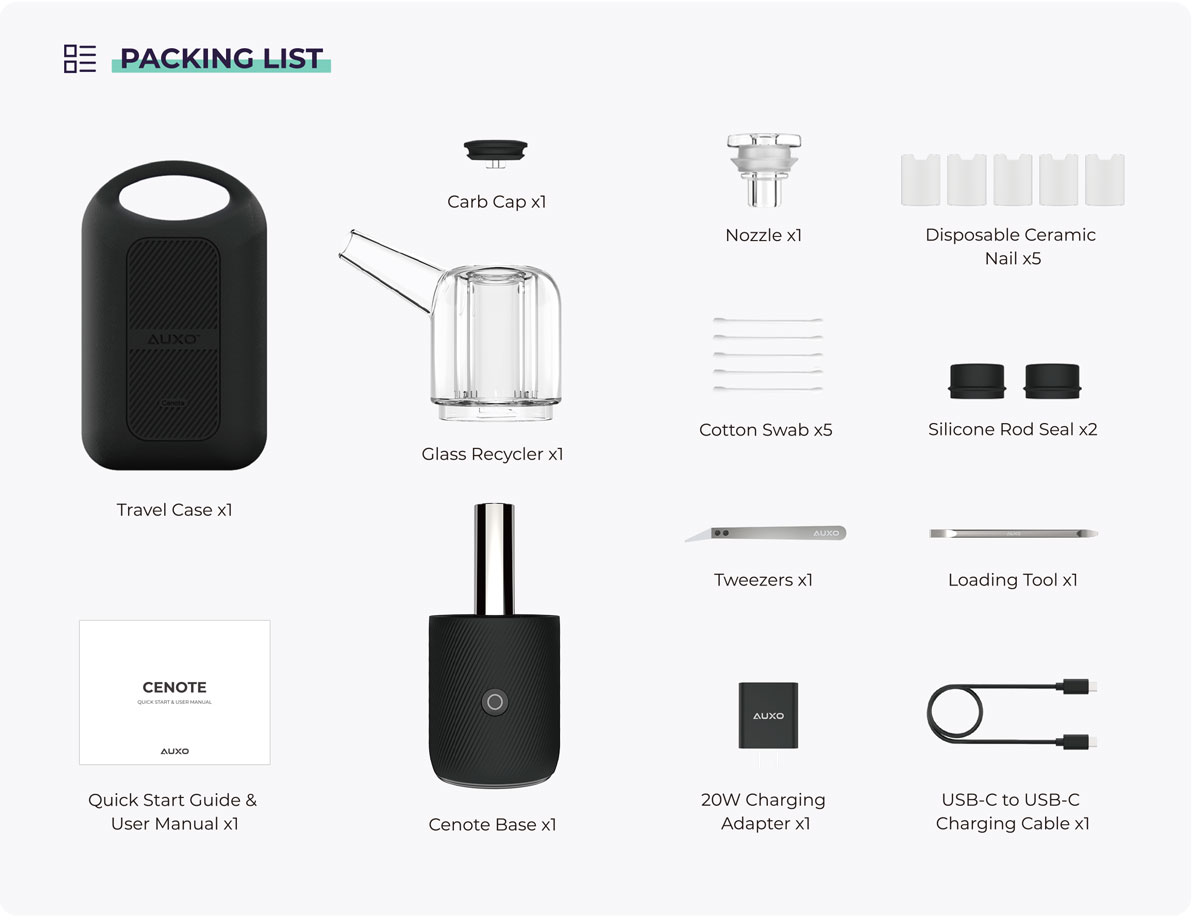 AUXO Cenote, Built For An Ultimate Dabbing Experience. Easy-swap Disposable Nail. Modern Design With 360 Degree Immersive Lighting Effects.