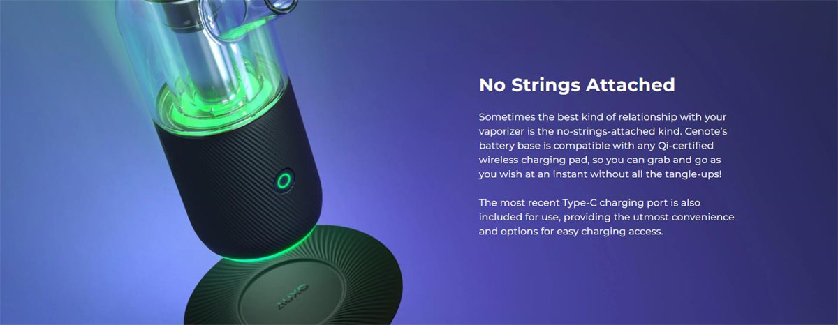 Sometimes the best kind of relationship with your vaporizer is the no-strings-attached kind. Cenote’s battery base is compatible with any Qi-certified wireless charging pad, so you can grab and go as you wish at an instant without all the tangle-ups!