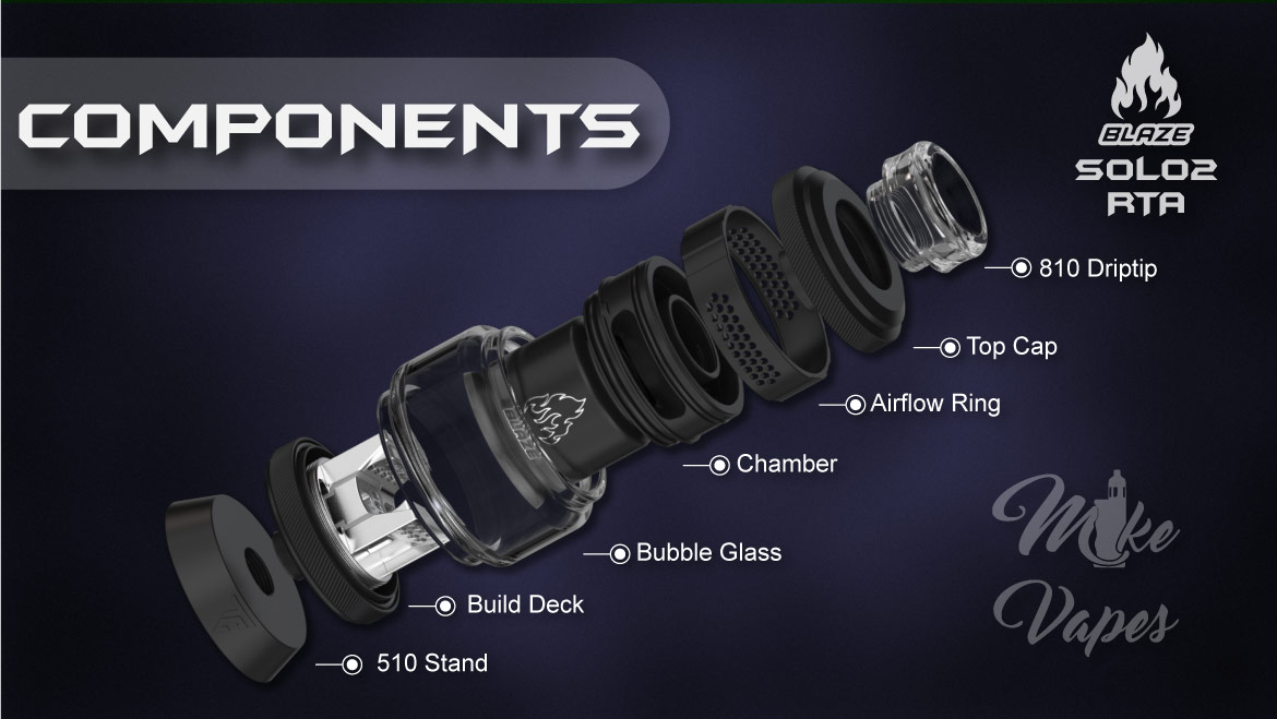 Co-designed by legendary reviewer Mike Vapes, the Blaze Solo 2 RTA is a next-generation single-coil rebuildable tank atomizer crafted for flavor enthusiasts and precision builders. Featuring an upgraded U-shaped postless build deck and 122 micro honeycomb airflow inlets, this RTA delivers ultra-smooth airflow with deep, rich flavor. Its top-to-bottom airflow structure ensures a 100% leak-proof experience, and the intuitive quarter-turn top cap makes refilling clean and easy. A must-have for serious single-coil RTA users.