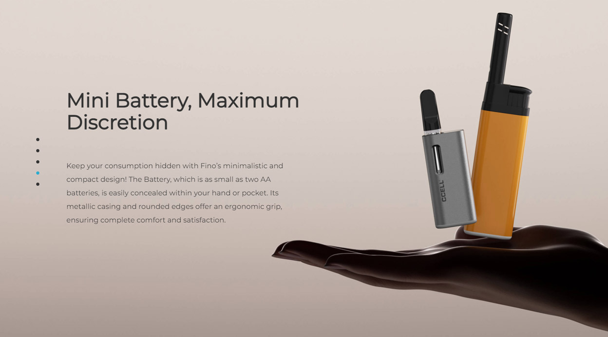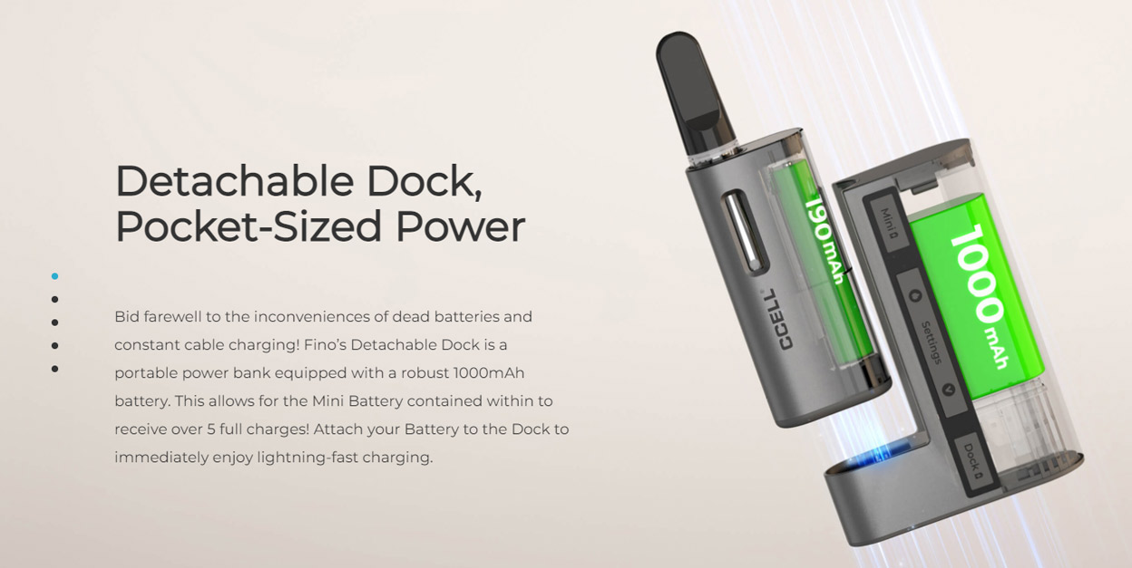 The CCELL Fino 510 Battery Features A Detachable Power Dock Along With A Discreet Mini Battery With An Oil Window.