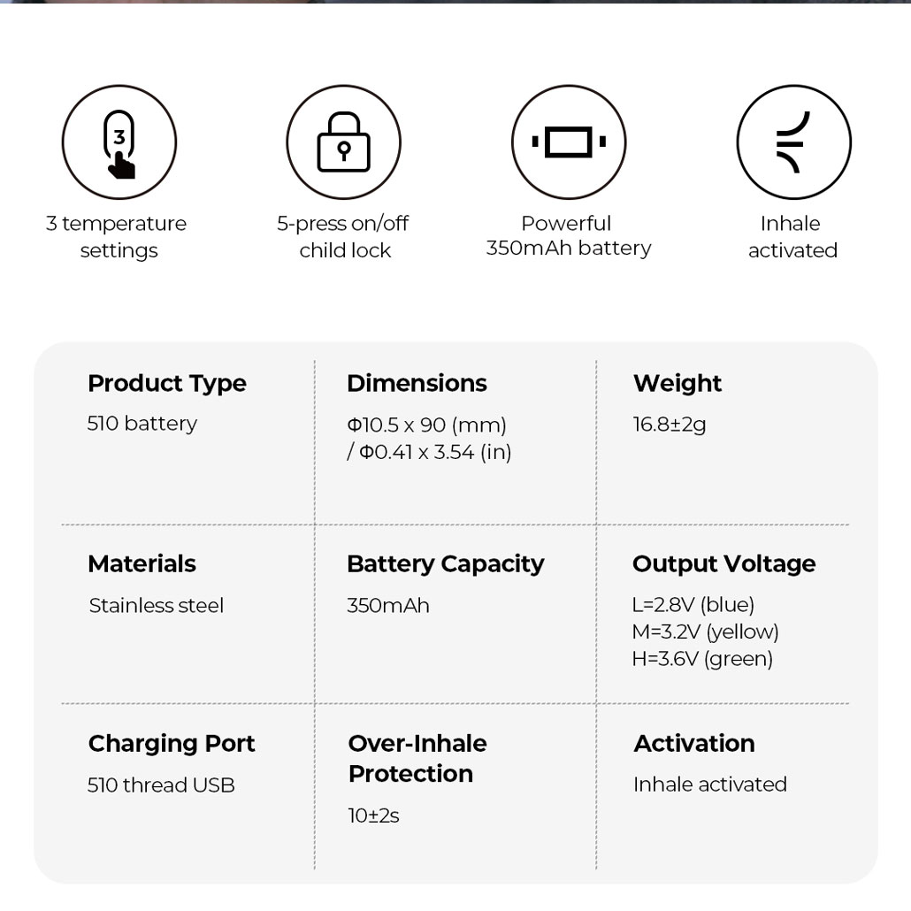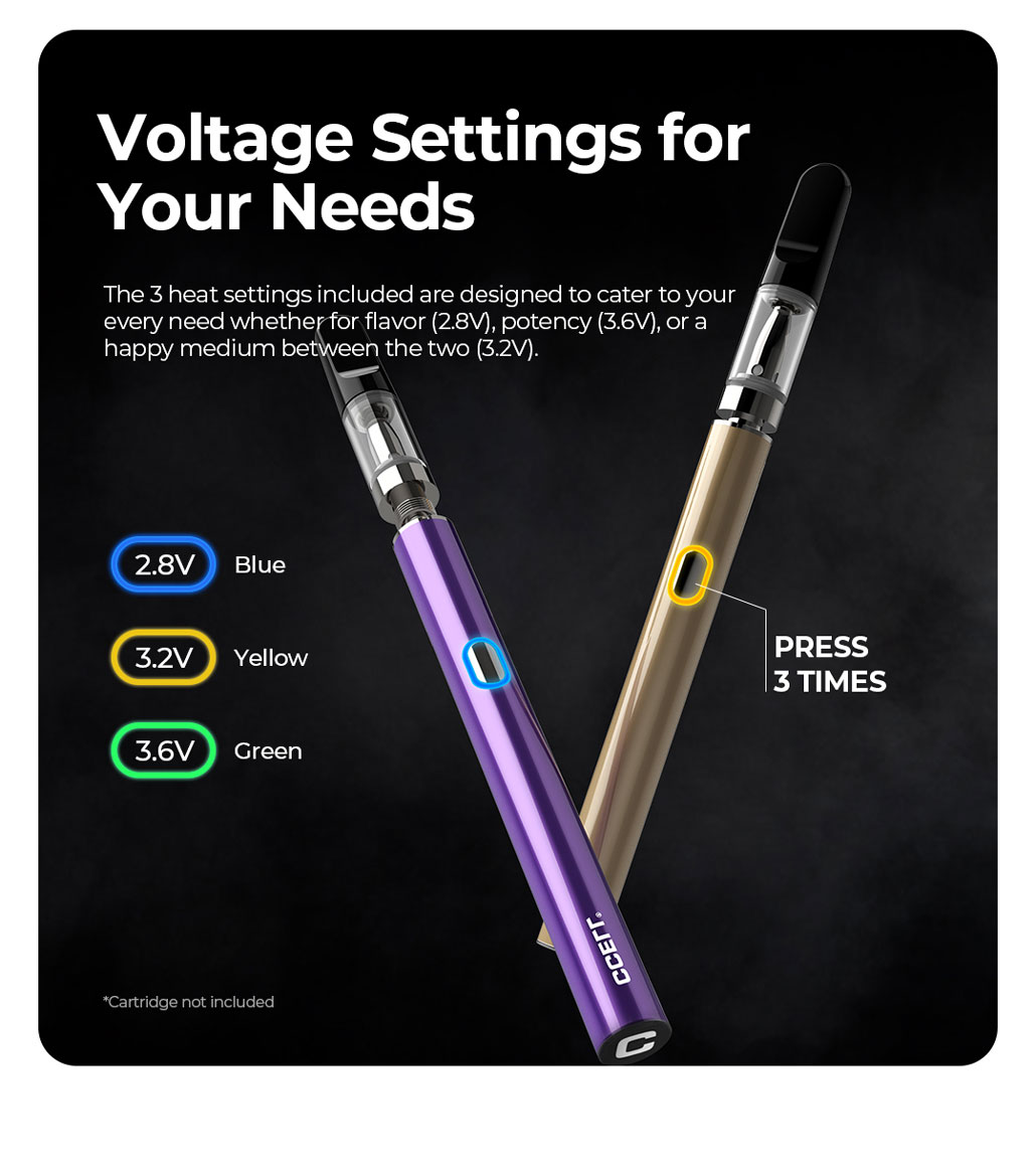 Simple and discrete, M3b and M3b Pro have more to offer than meets the eye. These extremely portable batteries are equipped with adjustable heat settings, allowing you to personalize and optimize your experience based on the different viscosities of your content. Together, with CCELL 510 thread cartridges, you will be sure to enjoy more consistent, large clouds of vapor with truer-to-taste flavors.