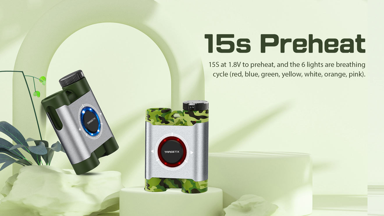 The TargetX is equipped with a 15S preheat function, which can warm up your oils before vaping. It will help deliver the materials’ original flavor to you.