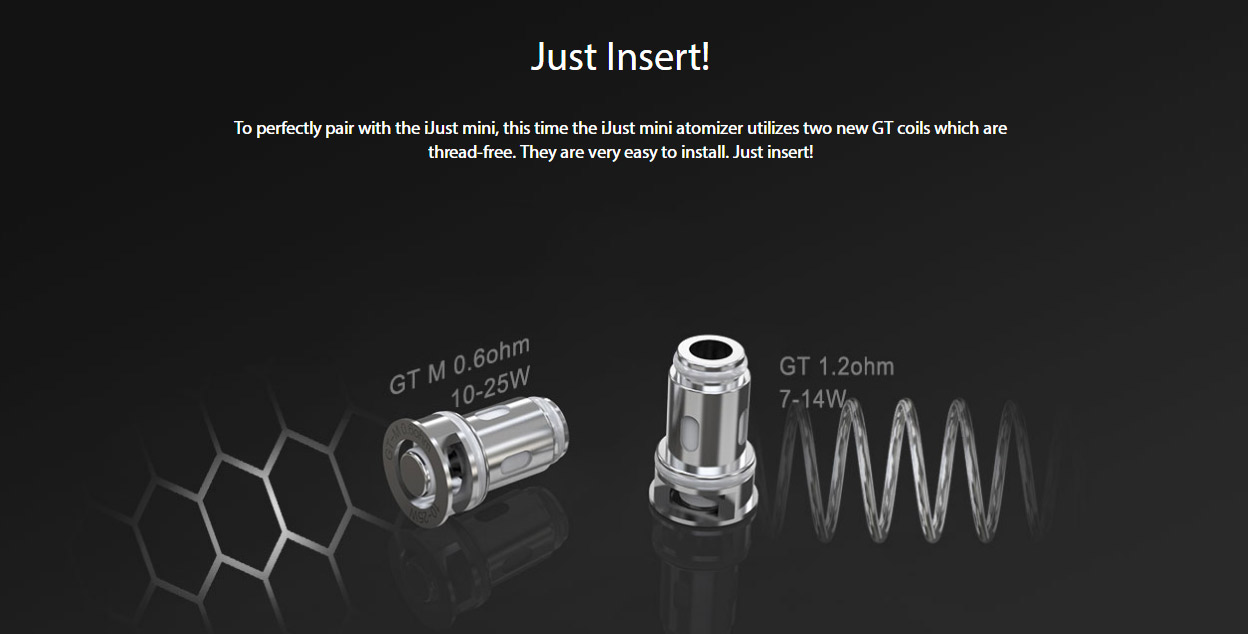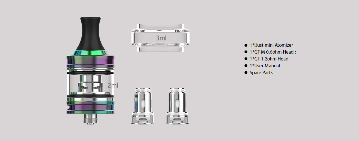 For child’s security, the Eleaf iJust mini atomizer features a completed childproof system which allows easy filling and improved leak protection. To perfectly pair with it, the iJust mini atomizer utilizes two brand-new GT coils which are thread-free and very easy to install.