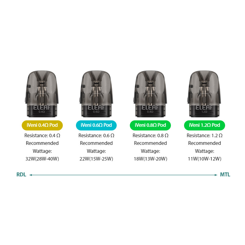 This Pod Is Design For The IVeni Series (iVeni Se & IVeni Pod),Offers 4 Different Resistance Values To Choose(0.4/0.6/0.8/1.2ohm),each Pack Has 4pcs.