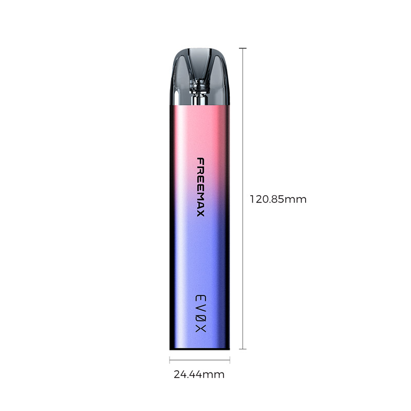Freemax EVOX Pod System Kit comes with a powerful 1000mAh built-in rechargeable battery, 5ml vape juice capacity, side filling system and is perfect for MTL and RDTL vaping.It is compatible with EVOX Pod Cartridges with four resistance options (0.6ohm,0.8ohm,1.0ohm and 1.2ohm).EVOX Pod by Freemax is compact and sleek, perfect for daily vaping.