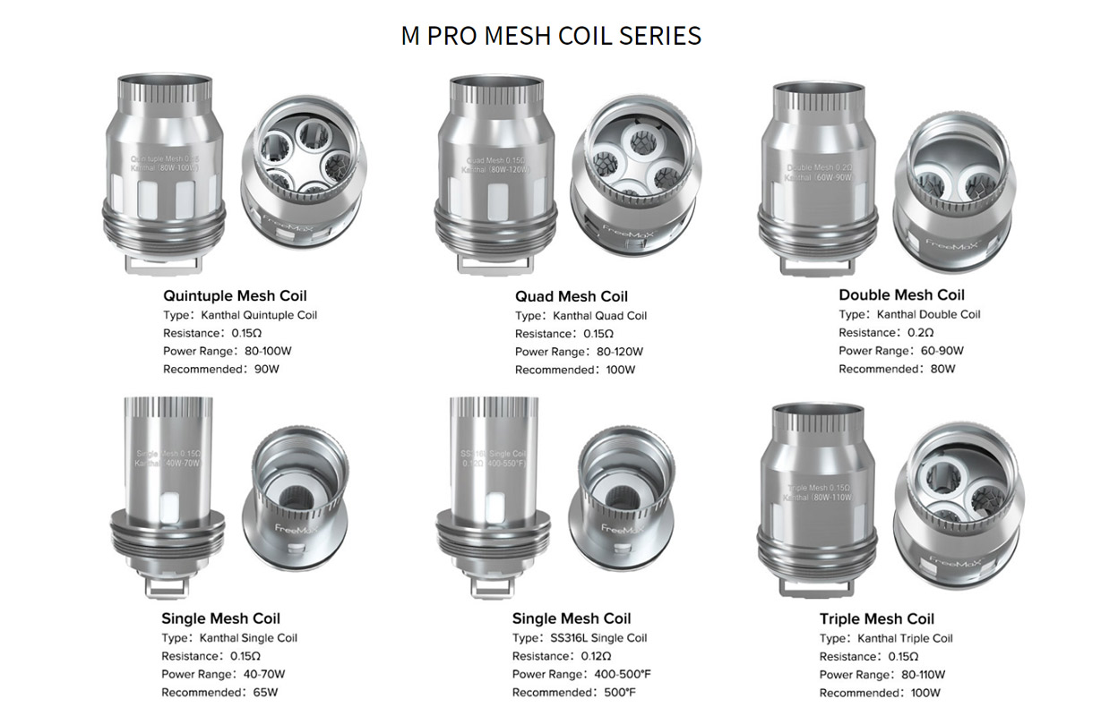 These Kanthal Single Mesh 0.15ohm Coils are perfectly compatible with FreeMax Fireluke, Fireluke Pro and Mesh Pro Tank Atomizer.
