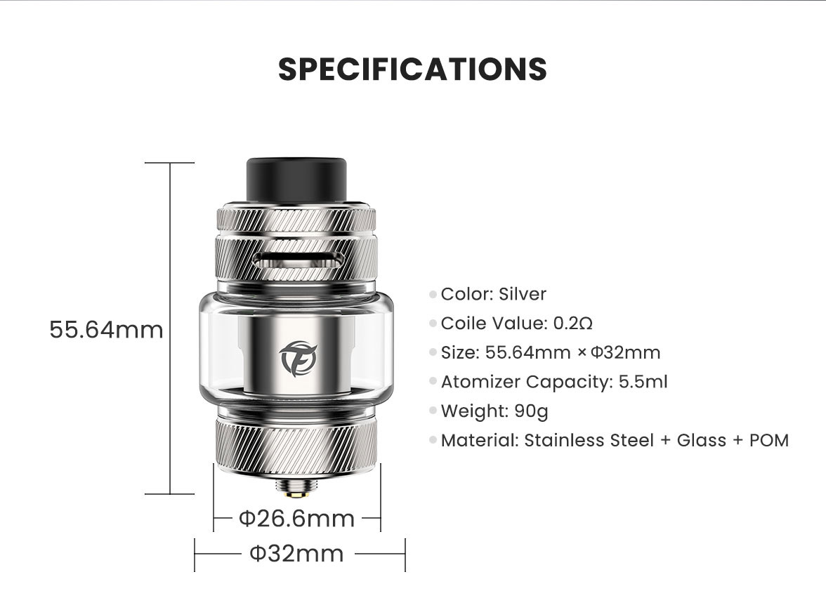 Fumytech Gotank Sub Ohm Tank Is The Sub Ohm Tank Allow It Can Hold 5.5ml E-juice,top Fill And Top Airflow,compatiable With The FTC Series Coils.