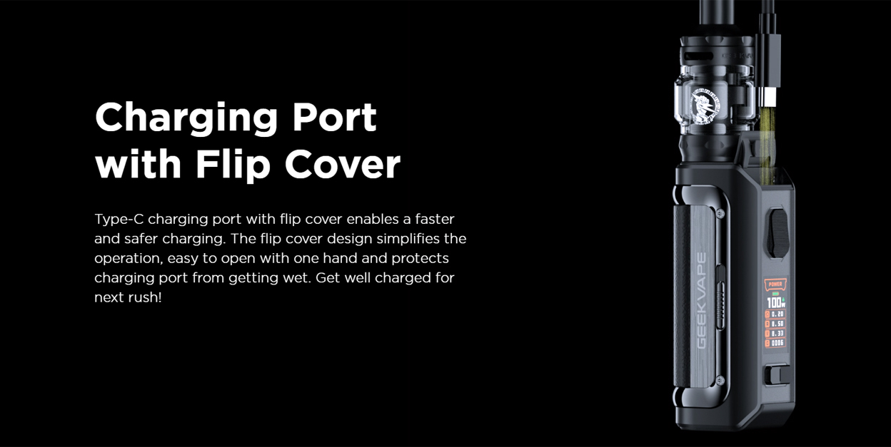 Geekvape M100 (Aegis Mini 2) Mod meets the new mini with new tri-proof. Aegis Mini 2 Kit with industry-leading IP68 rating water & dust resistance. Ground-breaking shock-resistance. An all-time stable output system. Built-in 2500mAh battery. Accidental press protection. Bigger screen with new UI. Type-C charging port with waterproof flip cover.