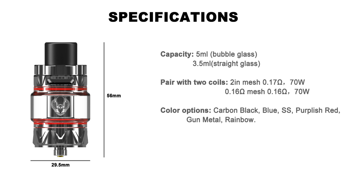 Horizon Sakerz Tank Is Lastest Sub Ohm Tank From The HorizonTech,measures In At 29.5mm In Diameter And Can Hold Up To 5ml E-juice Capacity To Meet Your Vaping Needs