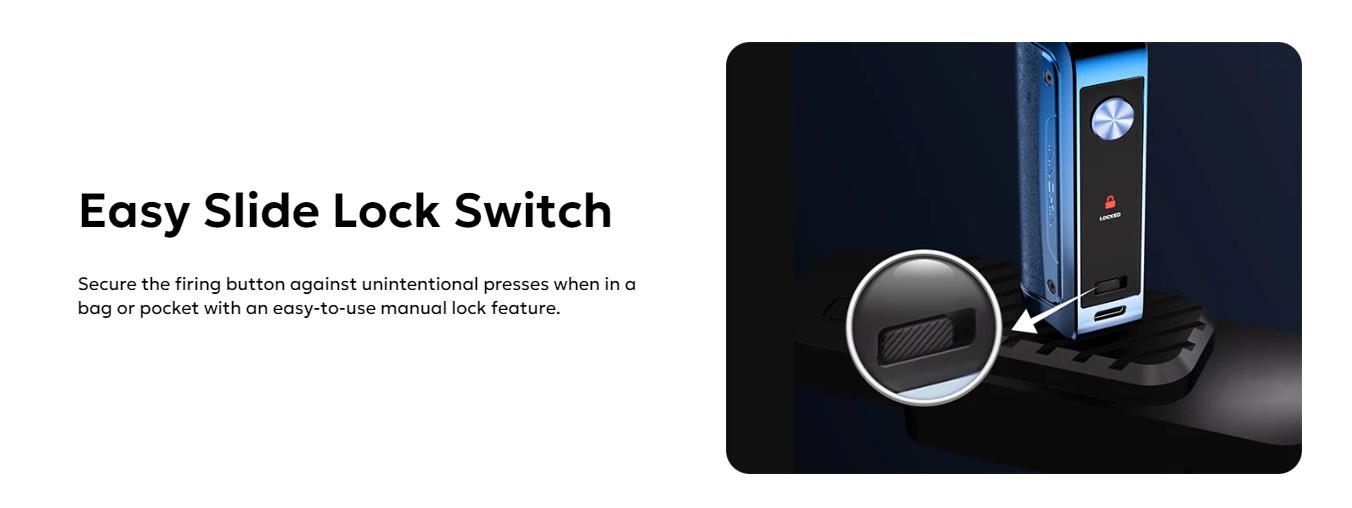 Engineered with high-quality zinc alloy, the Coolfire Z80 Nex Mod is both durable and lightweight, making it comfortable to hold and use throughout the day. This mod is perfectly compatible with the Zenith Nex Tank, supporting MTL and RDL vaping styles with different Innokin Z Coils. Additionally, the manual slide lock switch prevents accidental firing, ensuring safety when carrying the device.