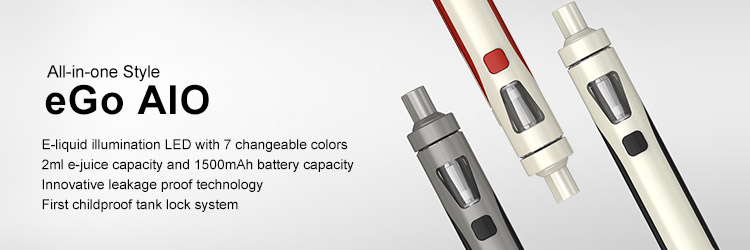 Joyetech EGo AIO Quick Start Kit 1500mAh, Is The Latest All-in-one Style Device In The Global From Joyetech. With The Newest 1500mAh SMALL Shape Battery And 2ml Cubis Tank, Anti-leaking Cup Design, Childproof Tank Lock And 7 Colors E-liquid Illumination LED, You Will Enjoy An Easy And Effective Vaping.