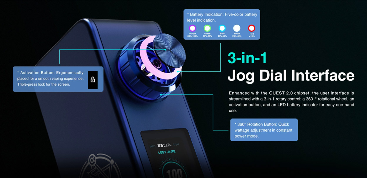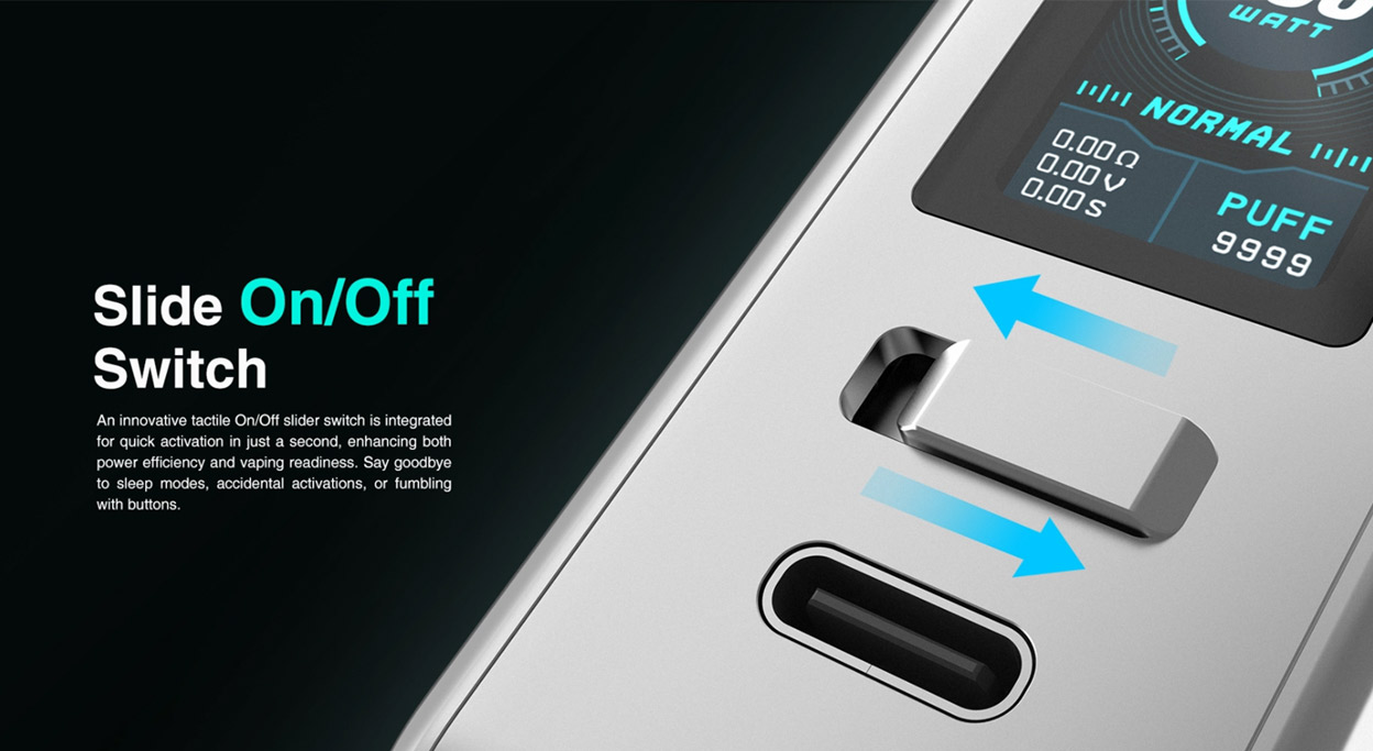 With Up To 100 Watts Of Power, Adjustable Via A Knob On The Switch, It Offers A Powerful, Personalized Vaping Experience.