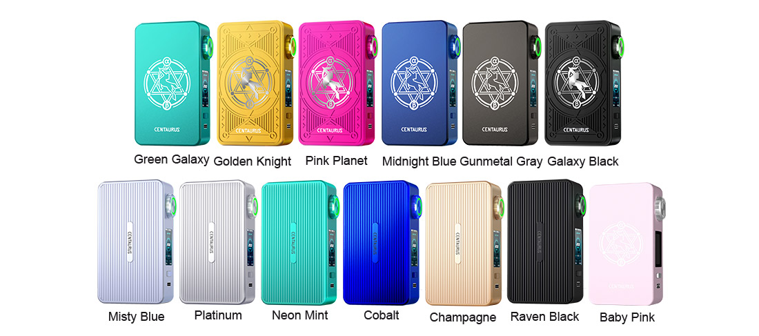 The Centaurus M200 innovates the way you look at mods . The 200W dual 18650 powered box mod with a 2A Type-c incorporates an innovative 3-in-1 jog dial control with a mechanic On / Off toggle switch is the perfect way to make vapers life easy . Featuring dual-side changeable face panel and 26mm seamless squicle aircraft-grade aluminum alloy body framing weighing just 150 + g for toughness and lightness .