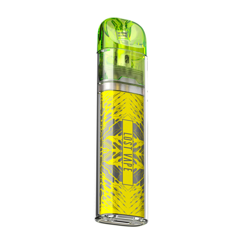 Lost Vape Ursa Art Pod System Kit,built-in 800mAh battery with a USB-C charging system, 5-18W output range,and an ultra-compact design, a transparent chassis, And the cartridge holds a solid 2.5mL of vape juice and has a side-filling hole with a rubber plug.