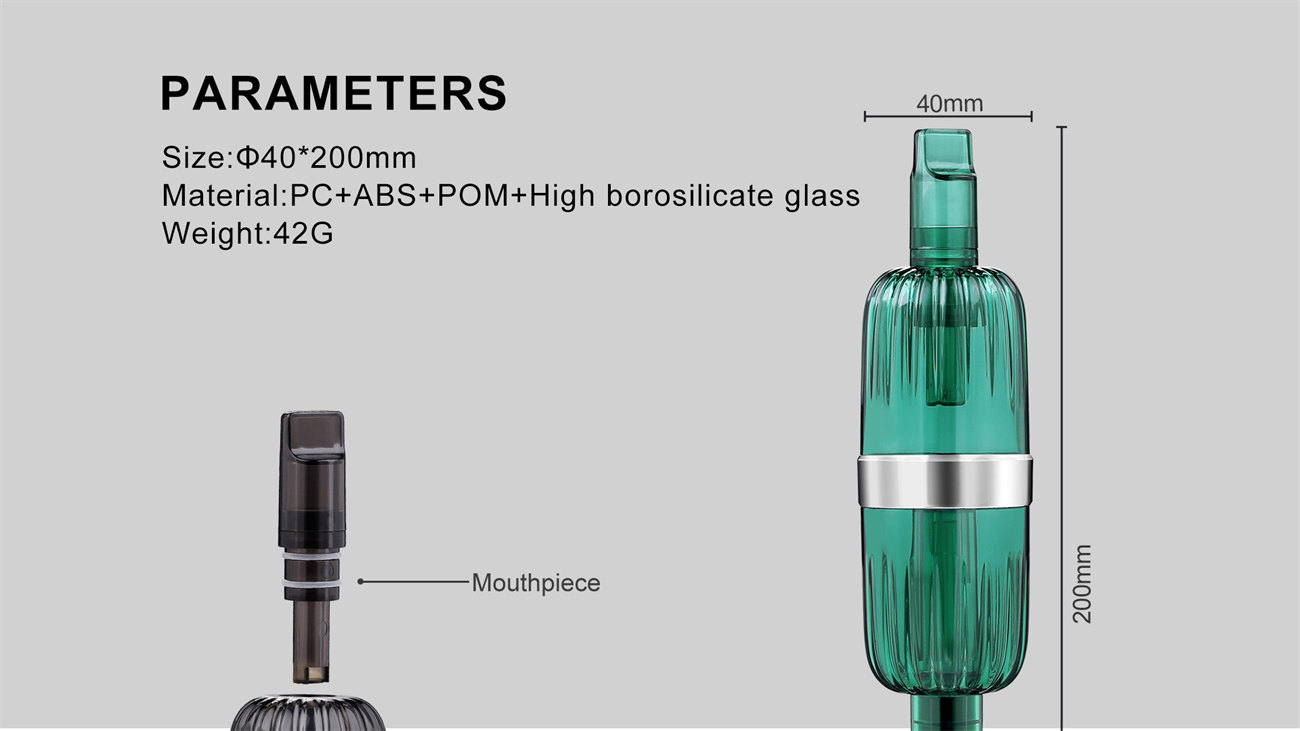 LTQ Nectar Collectors, it is not difficult to see from its appearance that it includes a quartz tube heating rod, a main chamber with a percolator and a mouthpiece for easy inhalation. The overall material is PC, ABS, POM and borosilicate glass, safe and practical.