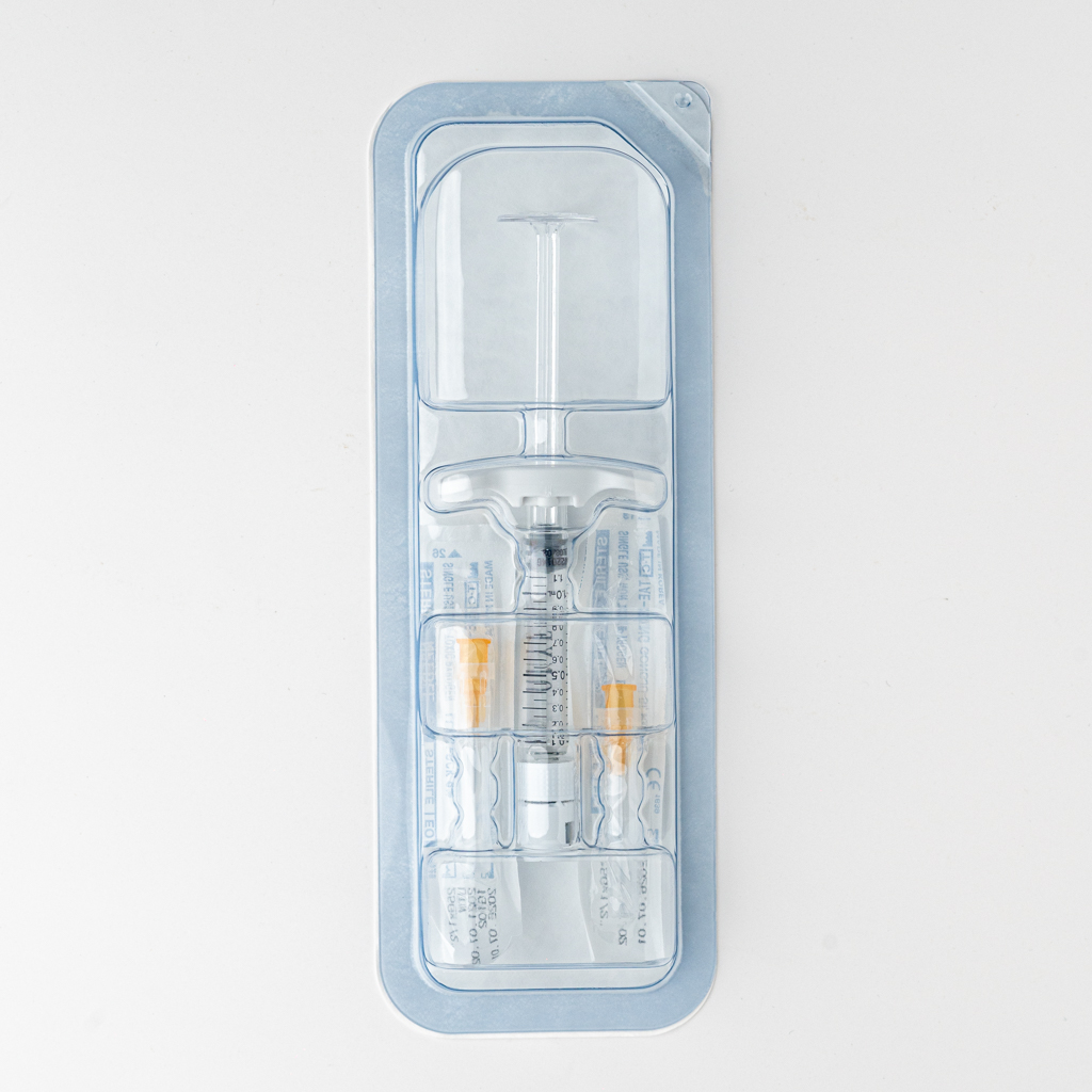One syringe contains 1,0 mL of Cross linked Hyaluronic Acid injectable gel with Lidocaine.