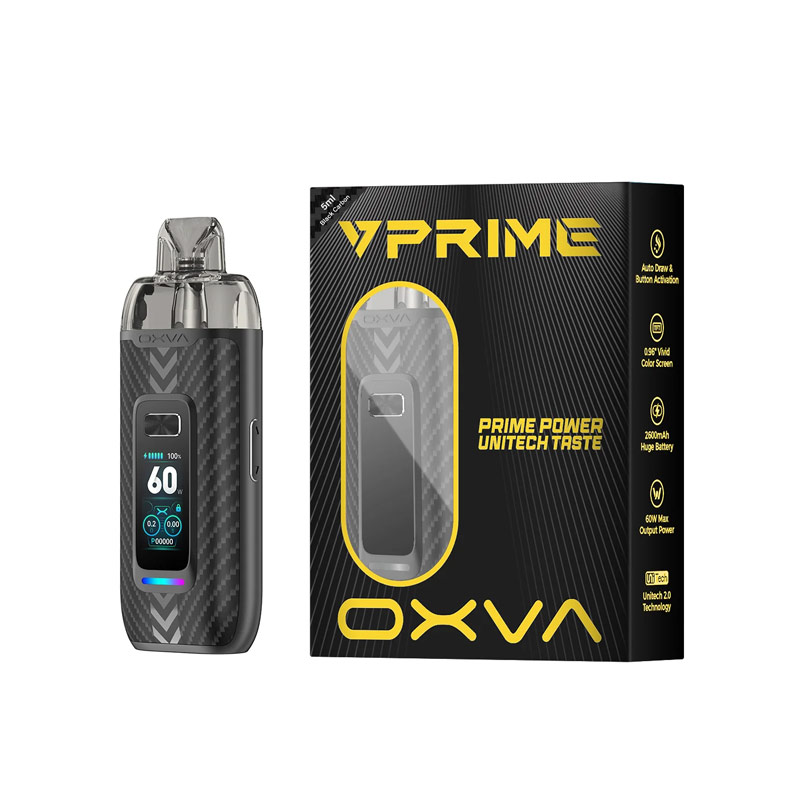 OXVA VPRIME Is The First Ever Auto-Draw DTL Pod System Featuring A Vivid 0.96-inch Color Screen, Offering Ultra-realistic 3D Visual Experience And User-friendly Interactions. With A Huge 2600mAh Battery That Powers Up To 60W Of Output Kit