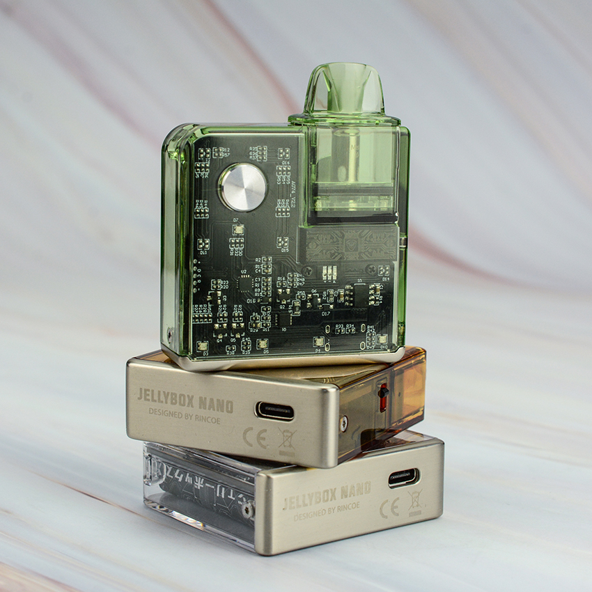 With Its Quality And Elegant Appearance, Rincoe Jellybox Nano Pod Mod Kit Maintains A Compact Design, Standing 54mm Tall, 68.2mm Wide, And A Mere 19mm In Depth.
