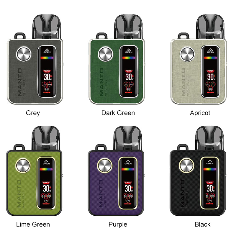 Rincoe Manto Nano Pro 2. As a fully upgraded version, this vape utilizes a larger display screen with more data you need, including the time of vaping, output power, and the resistance of the coil installed. This intelligent vape is still compact and portable with more features and functions. Whether you need a higher output or more air, you can change the settings according to your needs. Make your vaping fresh and simple with the new Rincoe Manto Nano Pro 2.