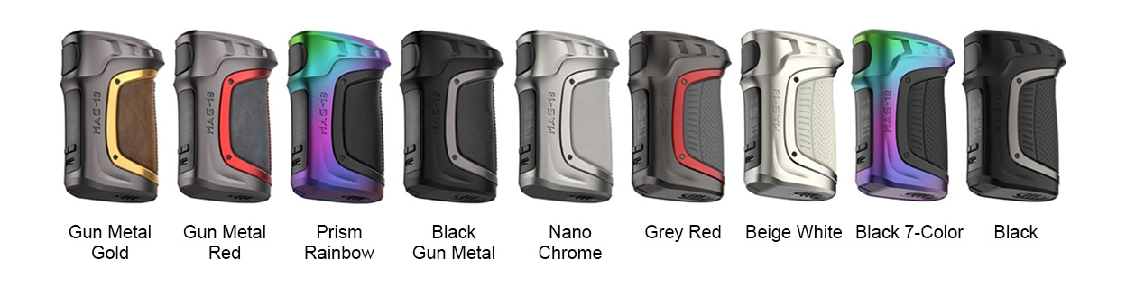 Smok MAG 18 Mod enhances superb vapor by max 230W output, powered by dual 18650 batteries(not included), it features an IQ-X chip for Bypass, VW, and TC mode. Accepting TFV18 Tank by 510 thread, it boosts the best cloud for advanced vaping. Additionally, TFV18 Tank measures 31.6mm in diameter and accommodates up to 7.5ml vape juice. The 0.96-inch TFT color display is user-friendly and offers vaping data to monitor. Constructed from zinc alloy, this classic MAG 18 mod is more durable and versatile.