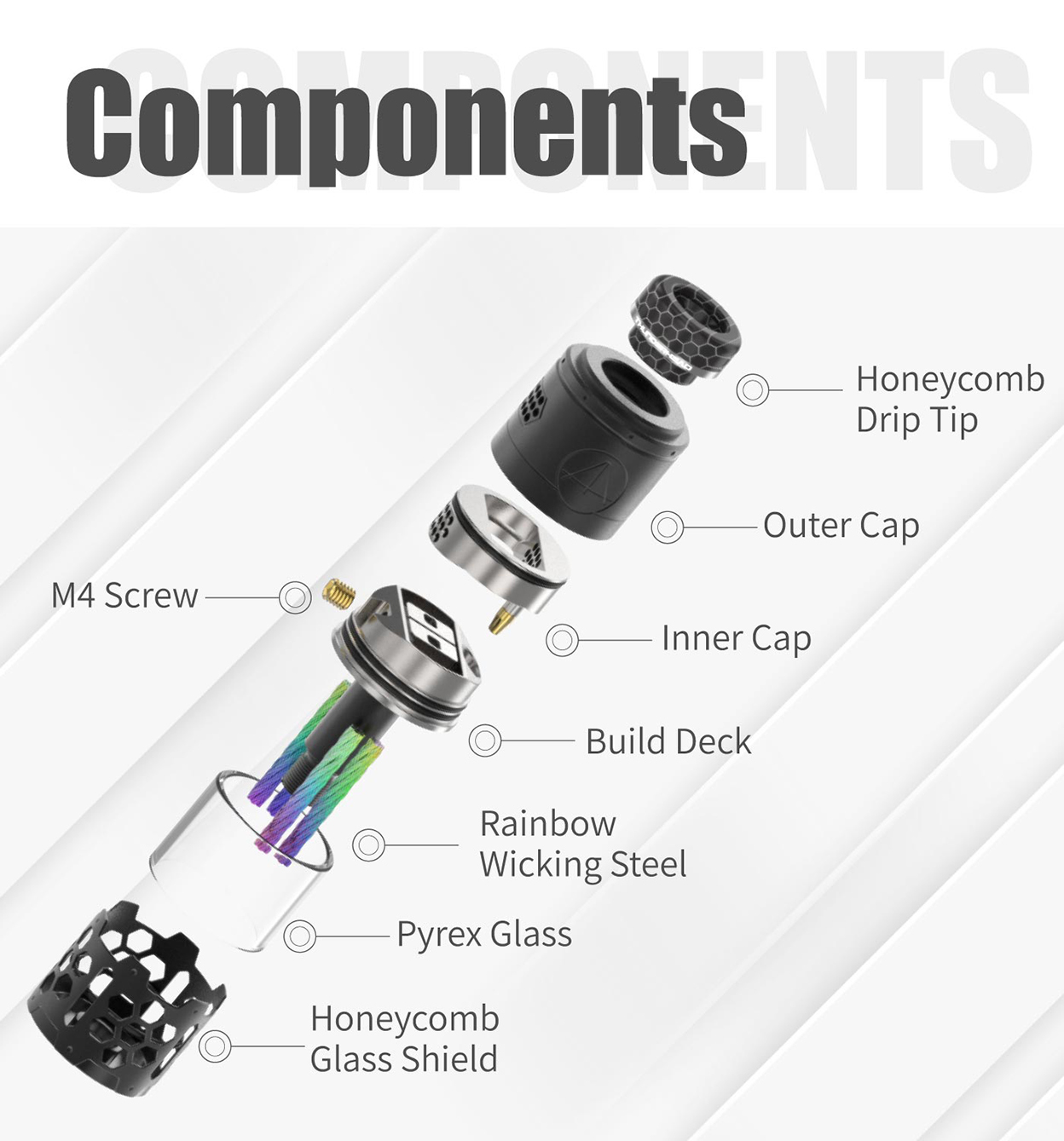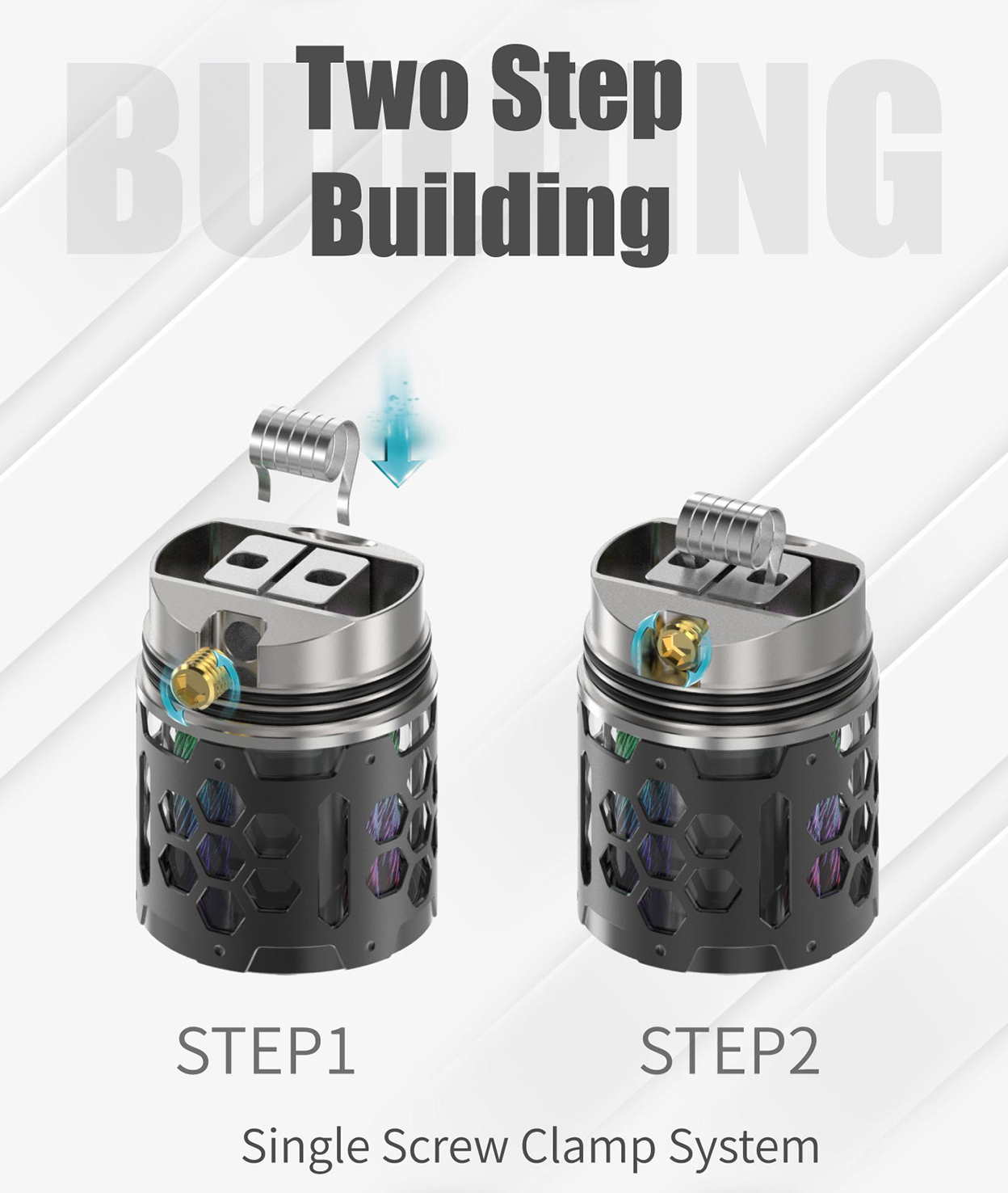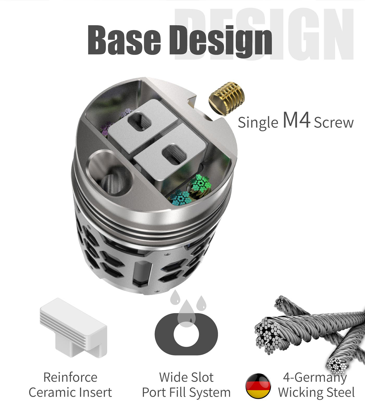 The 26 holes honeycomb airflow design that locates double sides has no query to fulfill its fantastic flavor. Aside from that, the dual airflow cap fairly determines the dense flavor and chases a high level of the cloud. The screw postless build deck has the ability to emit the vapor and is designed for one hand can operation. Artemis RDTA caters to 4.5ml vape juice and can refill from a wide slot side refill hole, pulling out its sleeve, and refilling your e-juice from the side port directly.