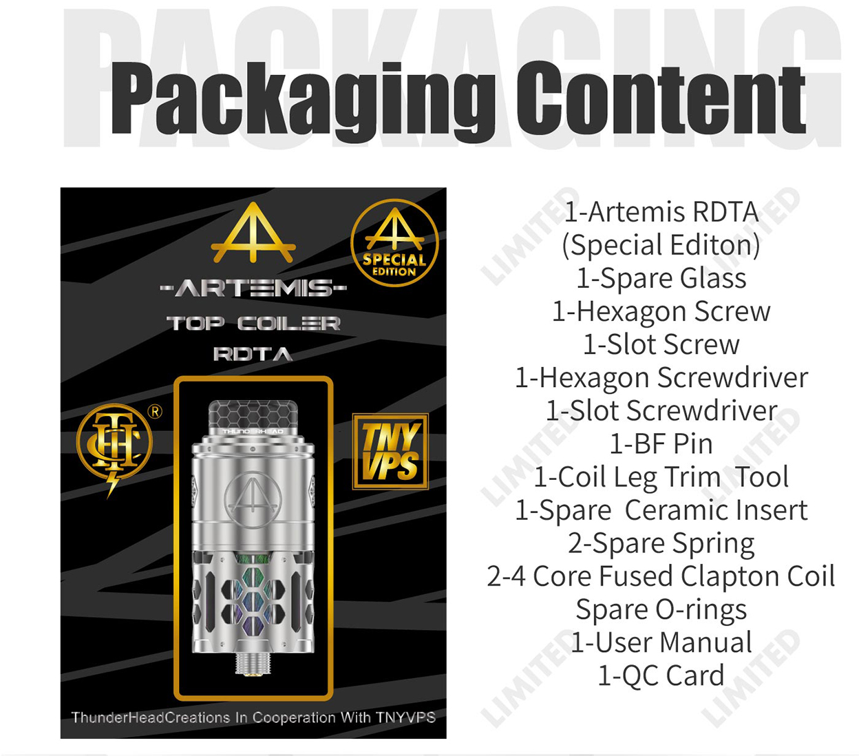 Artemis RDTA Special Edition Is The GLOBAL LIMITED Edition And Quantity 1666pcs Only, Collaborated With TNYVPS And Breaking Through Itself From Its Standard Edition And Create A New, Artistic, And Design RDTA.