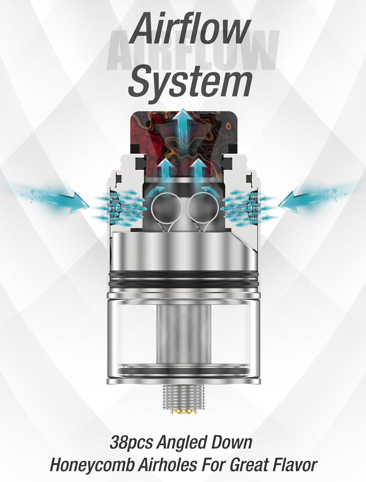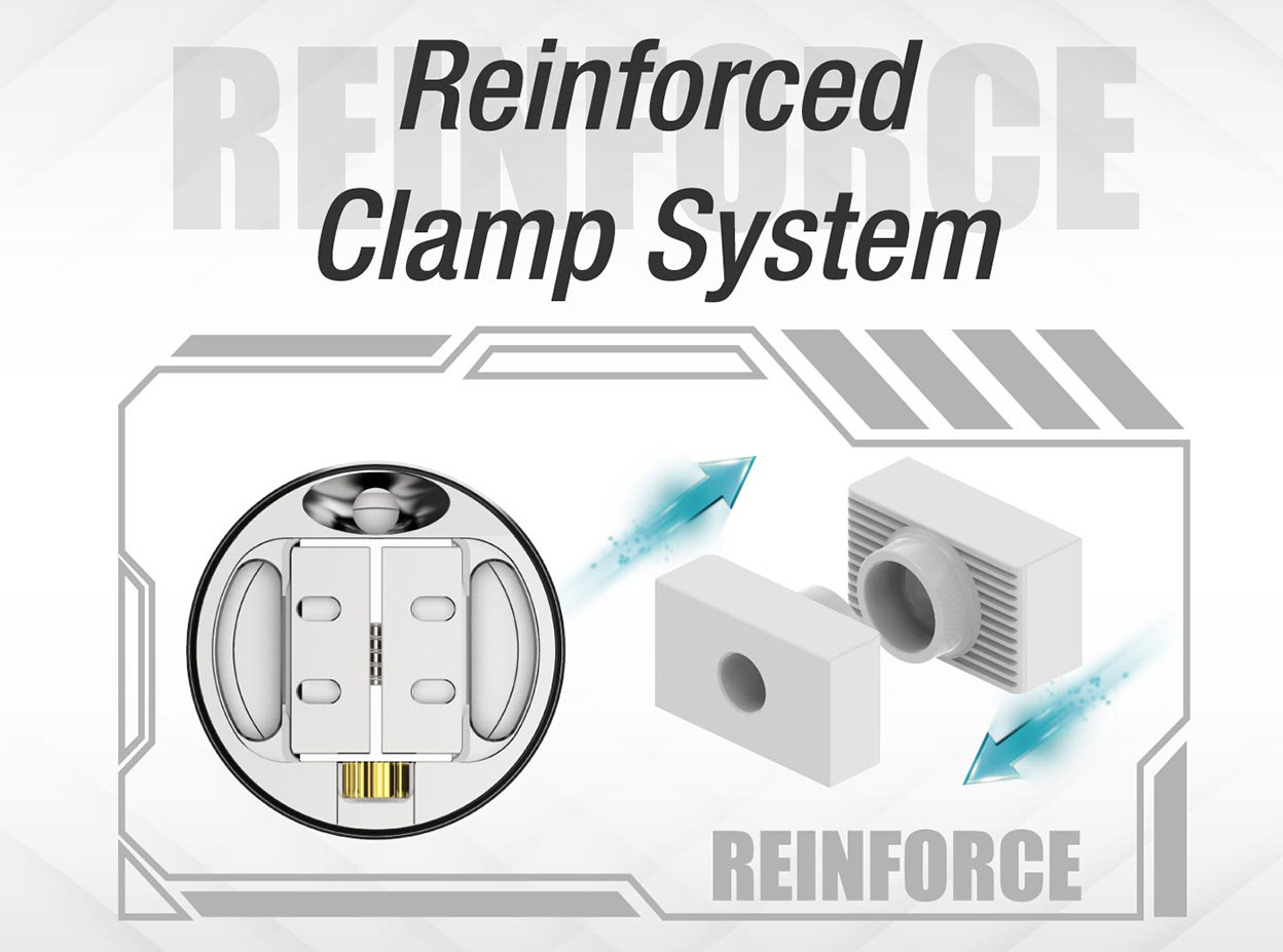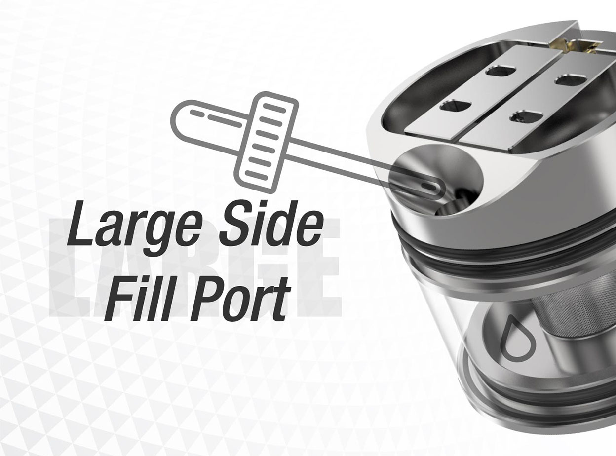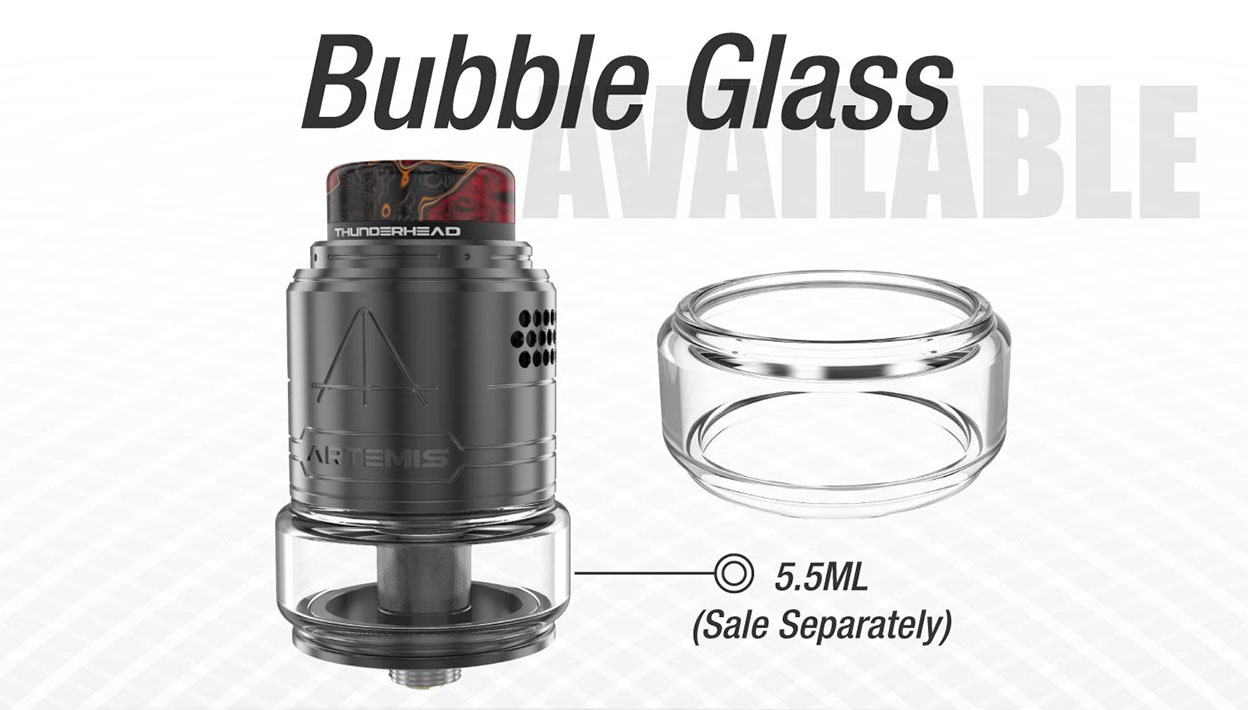 The Artemis II RDTA is a dual coil version Artemis which inherited from the first generation. It comes with patterned clamp system and large side fill port design which brings you the best use experience ever. Featuring with full range honeycomb airflow system to guarantee great flavor in any configuration. Plus there is a bubble glass available for more juice capacity. Extra BF pin is offered for daily vaping.