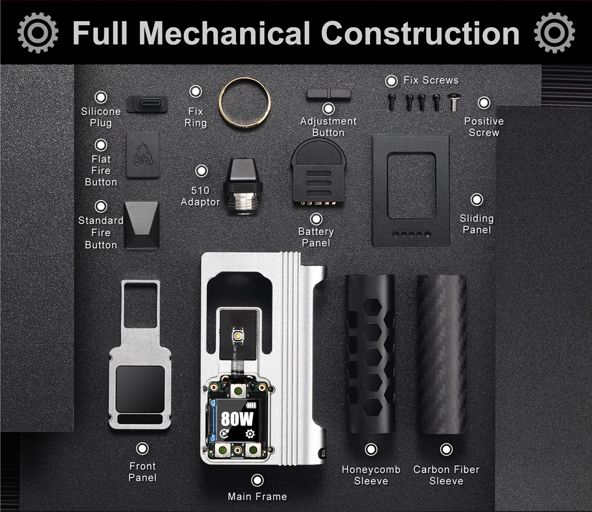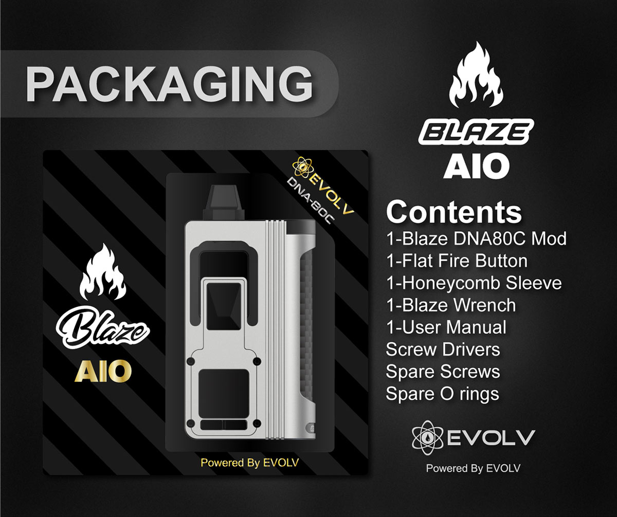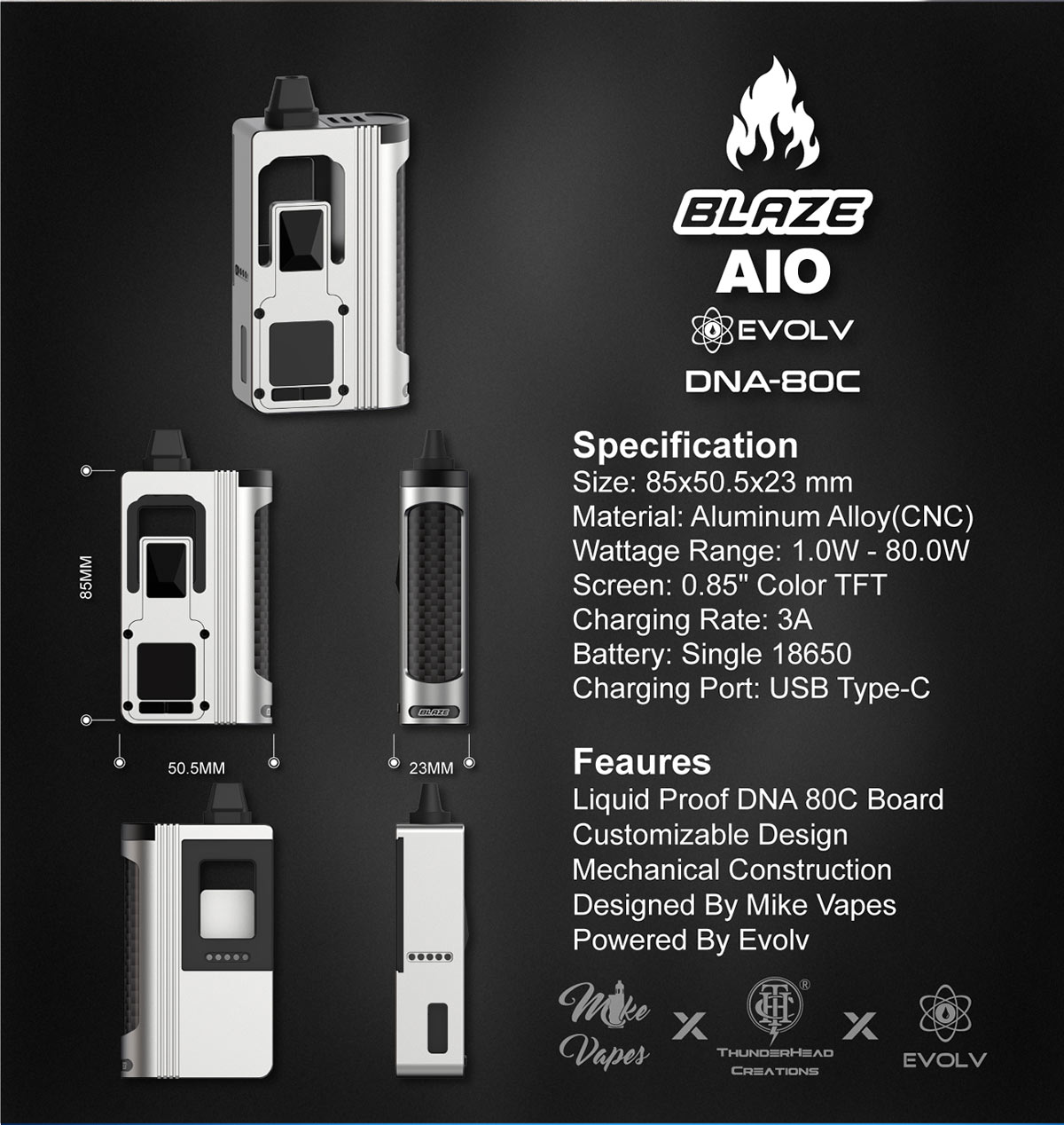 The Blaze AIO-DNA80C Made From High-quality Aluminium Alloy, Powered By An External 18650 Battery (not Included), Max 80watts Of Output.compatibility With Boro Tanks And RBA’s, Suitable For Everything From MTL To DL Vaping Styles.