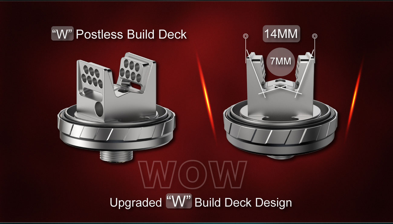 Here comes a single coil version of Blaze RTA – Blaze SOLO RTA,It comes with an upgraded “W” postless build deck, there are 14pcs Honeycomb Side Airflow & Slotted Bottom Airflow surrounded, which brings you maximum flavor.