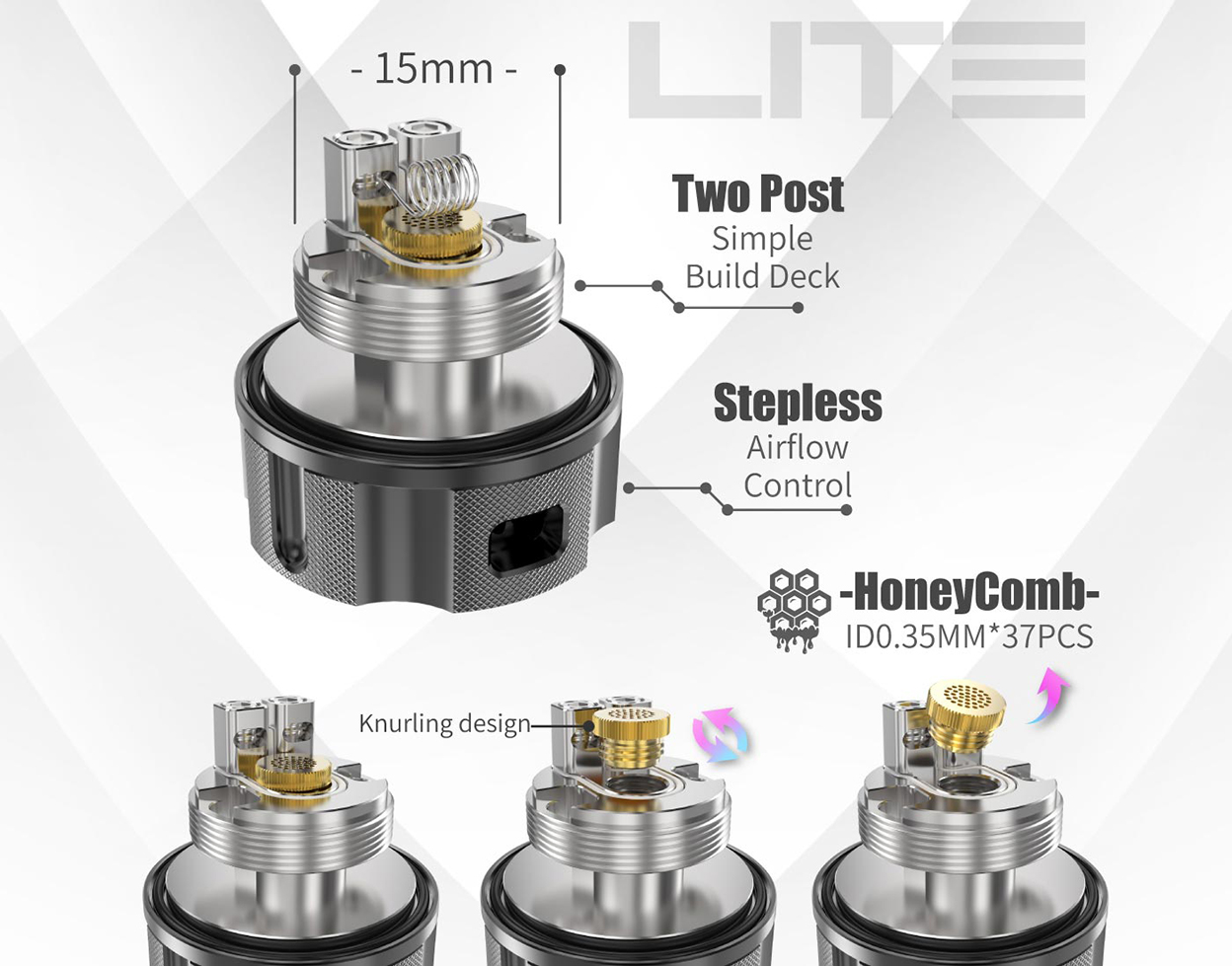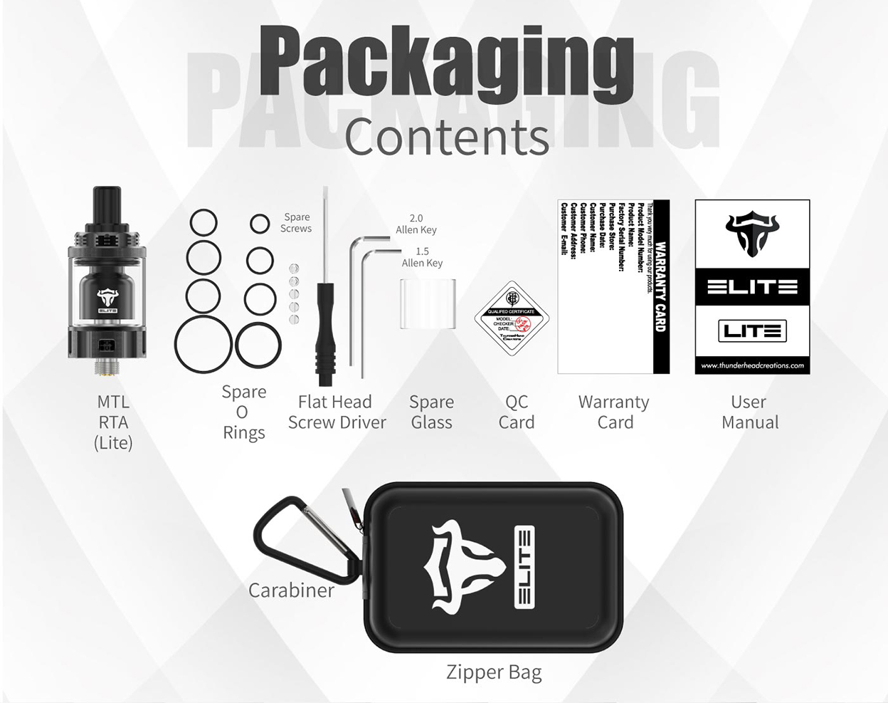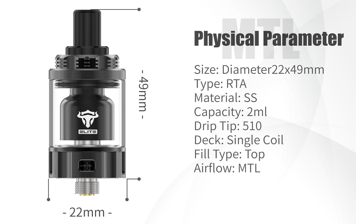 Here comes with a brand new Elite MTL RTA in 22mm diameter from ThunderHead Creations. It features the Tauren signature 360 degree stepless airflow control system, as well as the micro honeycomb airflow underneath the coil to offer you extremely great flavor. Moreover, there are 8 various airflow options to meet all your vaping demand perfectly. If you are searching for a compact MTL RTA with exquisite appearance and precise flavor, the Elite MTL RTA is exactly what you want.