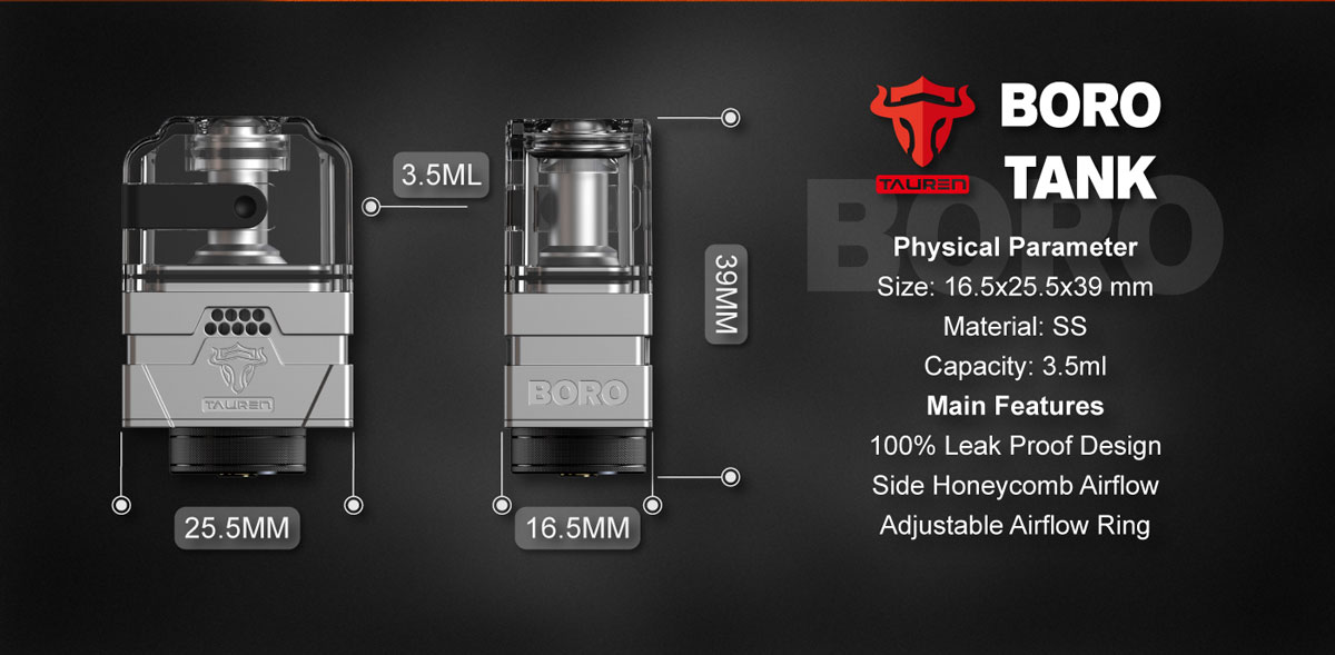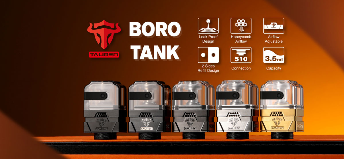 Tauren Boro Tank! It Comes With A Postless Build Deck, There Are 18pcs Honeycomb Side Airflow Surrounded, Which Brings You Ultimate Flavor. The Top To Bottom Airflow Design.