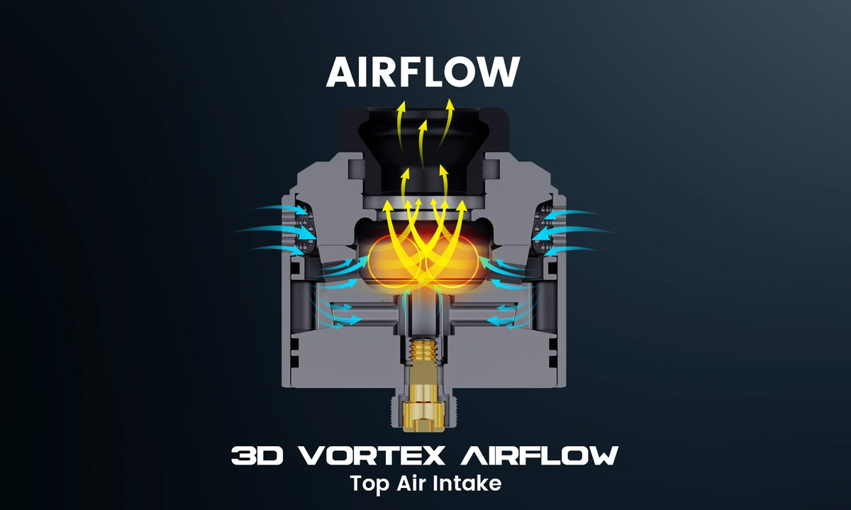 Thunderhead Creations Tauren Vortex 30 RDA is a new standard in rebuildable vaping with its innovative design and performance-driven features. Measuring 30mm in diameter, the Tauren Vortex offers a generous 2ml vape juice capacity and utilizes a dual-side 84-hole top air intake cap for unparalleled airflow. Its 3D Vortex Airflow system enhances flavor and vapor production, making each puff an immersive experience. The postless dual coil building deck simplifies coil installations, while the precise airflow control tailors your draw to perfection. Designed for both top and bottom filling, it ensures convenience during use. If you’re searching for the cheapest vapes near me, this RDA delivers premium quality at an unbeatable value.