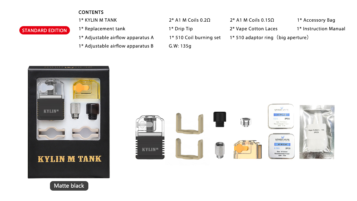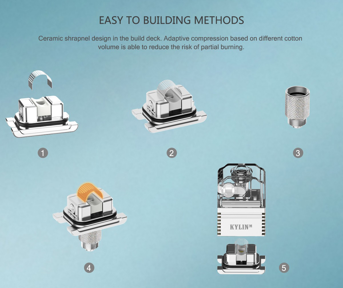 Vandy Vape Kylin M Tank is special design for BB Style Systems, Boro Devices, & the Pulse AIO Kit. This uses the Kylin M Mesh Coils.