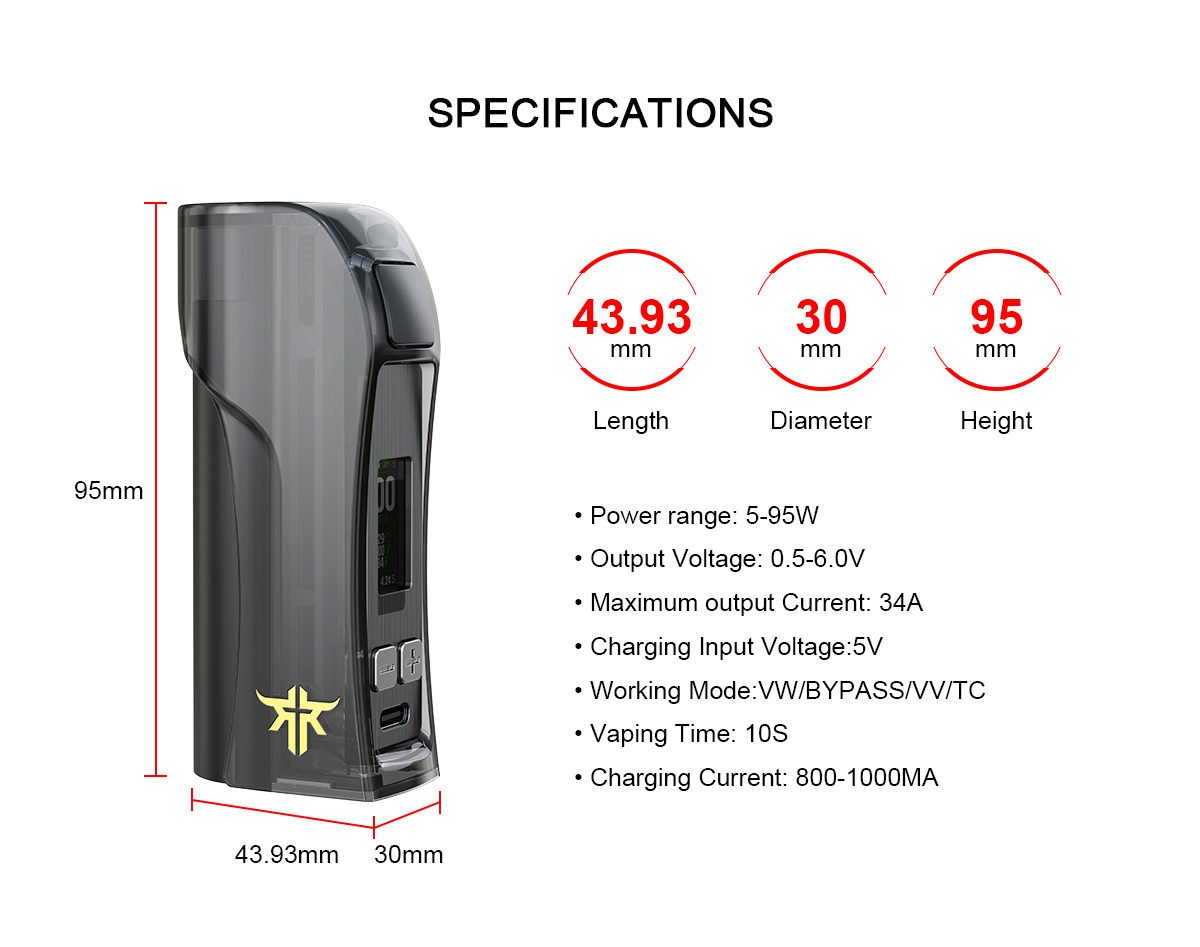 The Vandy Vape Requiem box mod is a transparent mod that requires the installation of a 21700/20700/18650 battery max 95w output wattage.High strength transparent materials make it high value,and the mod design of the curve to make the product more excellent ergonomic grip.make it lightweight and corrosion resistant, and perfect to match the rad/rta diameter in 28mm.