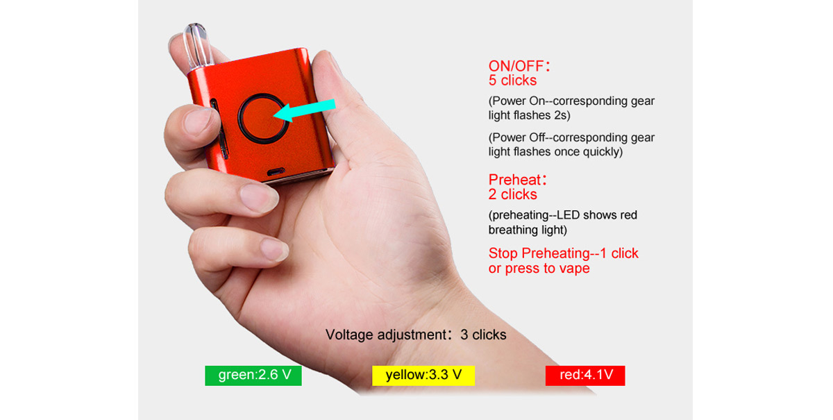 Vapmod Vmod Battery has a tiny size and 900mAh large capacity. It is designed with a large circle button to operate conveniently. It comes with 15s preheating function, you will enjoy pure and nice taste. It also has 3 adjustable voltages that can satisfy your different vaping needs. ST smart chip ensure safe vaping.