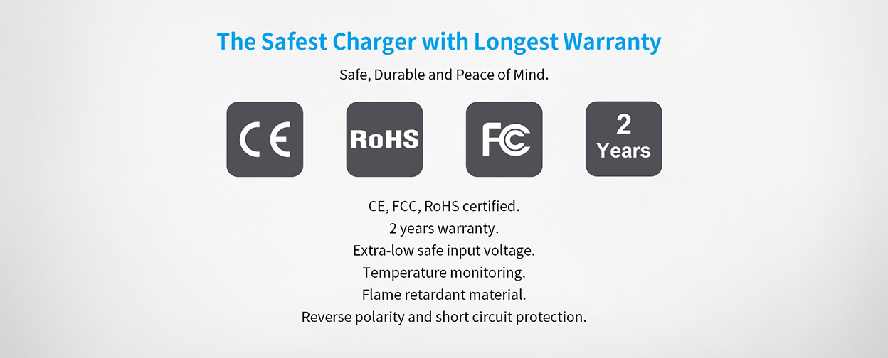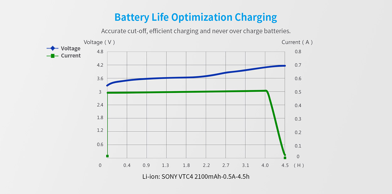 * Unique efficient charge method (TC-CC-CV) with 0.5Ax2