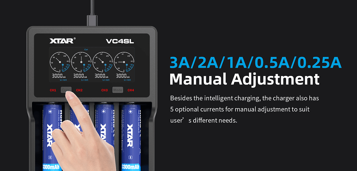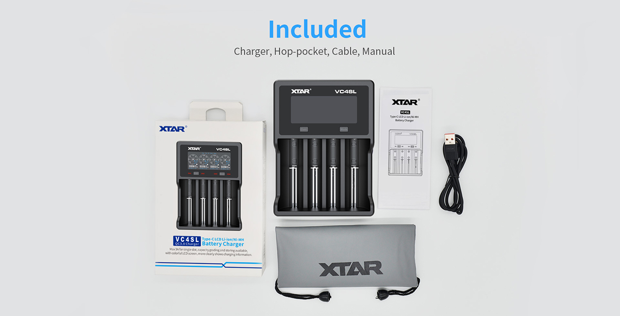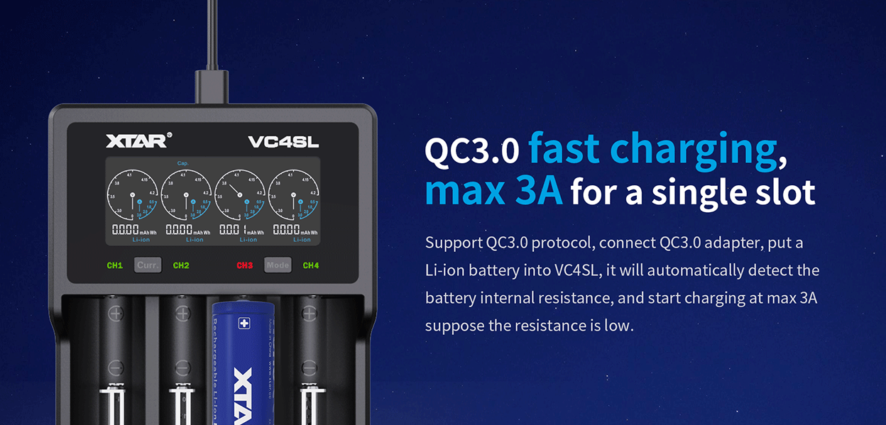 The XTAR VC4SL Is A Smart Battery Charger For 3.6 – 3.7V Lithium-ion, And 1.2V NiMH Or NiCD Batteries.