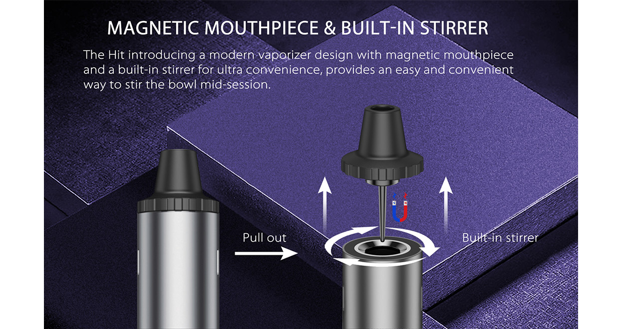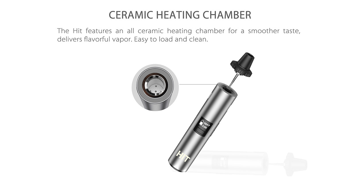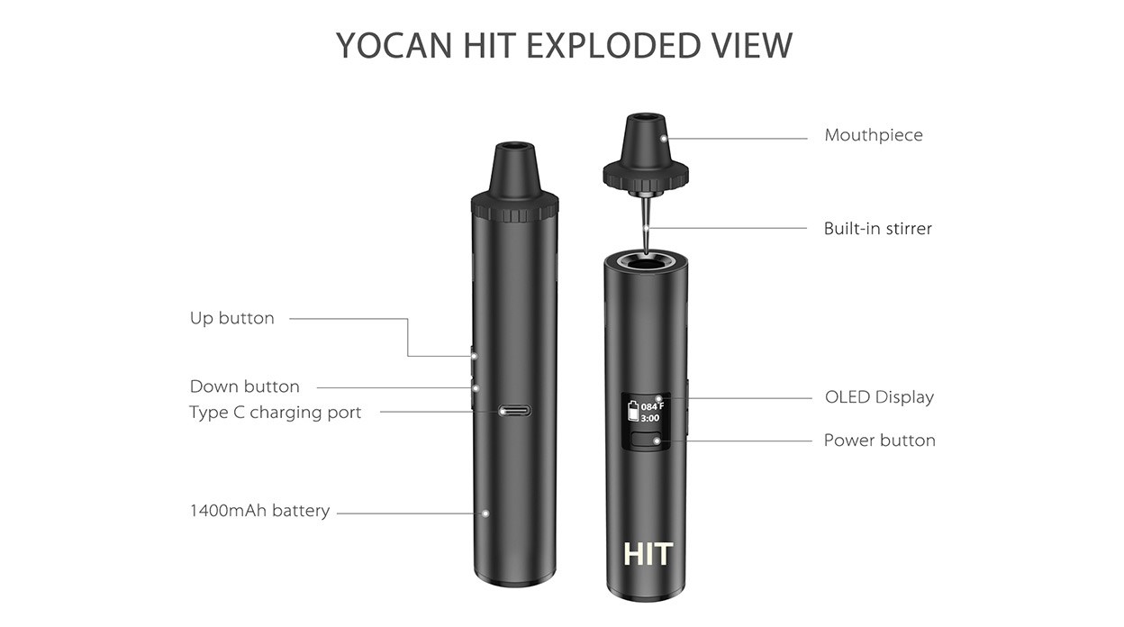 Yocan Hit features two setting heat up times of 3 minutes and 5 minutes which may be switched by pressing the power and down button at the same time. Temperature settings range from 200-480F with a 30-second heat-up time and a slight vibration to alert the user when it has reached temp. The Yocan Hit is designed with a magnetic mouthpiece and a built-in stirring tool which allows for packing and cleaning your device to be a much easier task. So all you need to do is twist the mouthpiece to mix your herb. It’s outfitted with a convection oven that’s designed and engineered to vaporize your select Drying strains. Yocan Hit uses the heat of the walls of the oven instead of using hot air to permeate the herbs inside the chamber. This allows the herbs to be vaporized without reaching the point of combustion, thus promoting clean and smooth vaporization of your herbs. The implemented super infused airflow allows for a maximum vaping intake which provides for a smoother and cleaner vaping experience.