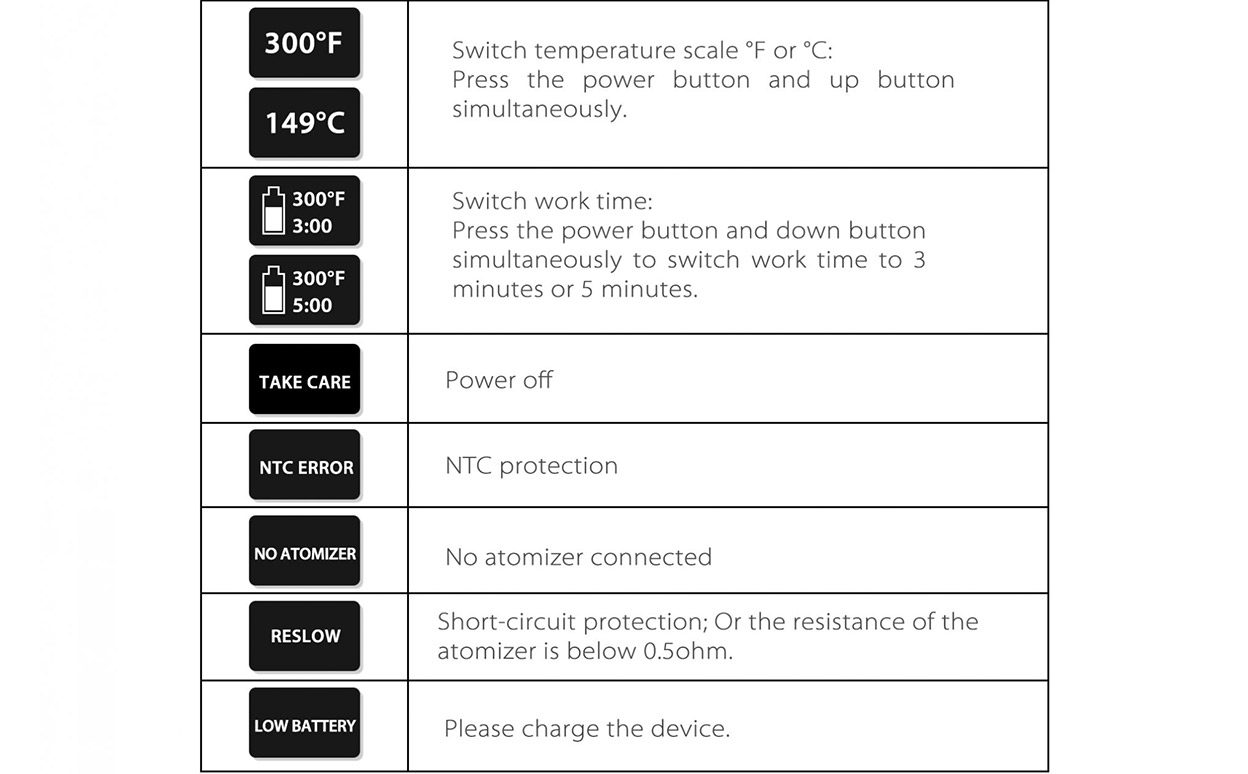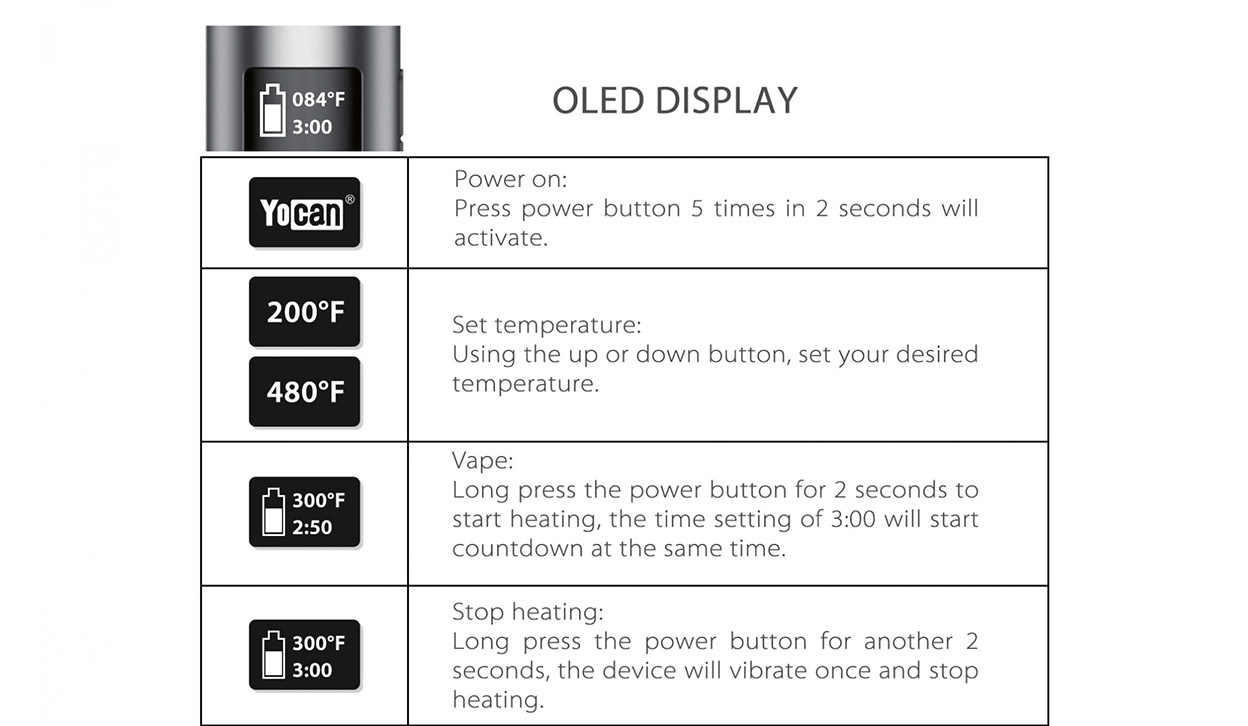 OLED Screen: Timer / Setting Temp / Power / Current Temp