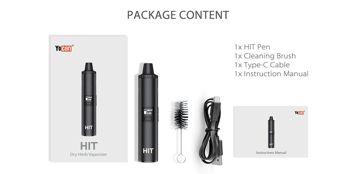 Yocan Hit Vaporizer Kit is a portable combustion-free Drying vaporizer. Designed for use with dry material. Yocan Hit Vaporizer is outfitted with advanced vaping technology and kept small and compact body, allow you to enjoy the ideal balance of utility and portability. The Yocan Hit Vaporizer comes with a battery capacity of 1400mAh, provides sufficient power for the equipment, which ensures that you have the latest and fastest in data and power transfer with its USB-C charging capabilities. The Yocan Hit Vaporizer has a large and clear OLED screen that keeps you updated on all of the necessary info like temperature and battery level. However, it has an intelligent vibration function as well, so you don’t need to look at the screen to know when it has reached the selected temperature. This makes for a convenient means of consuming herbs whilst you’re on-the-go.