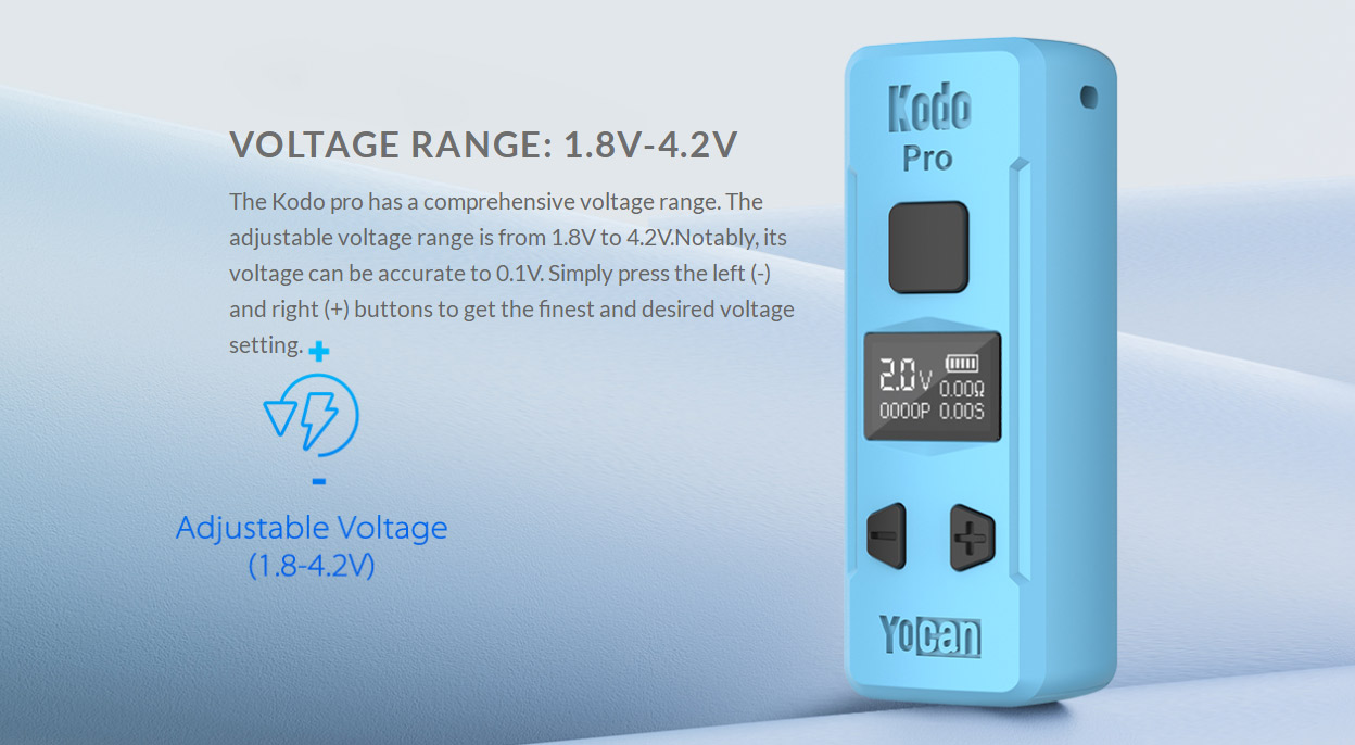 The Yocan Kodo Pro Is A Vape Battery For Cartridges. It Has A 510 Thread To Fit Most Cartridges On The Market.