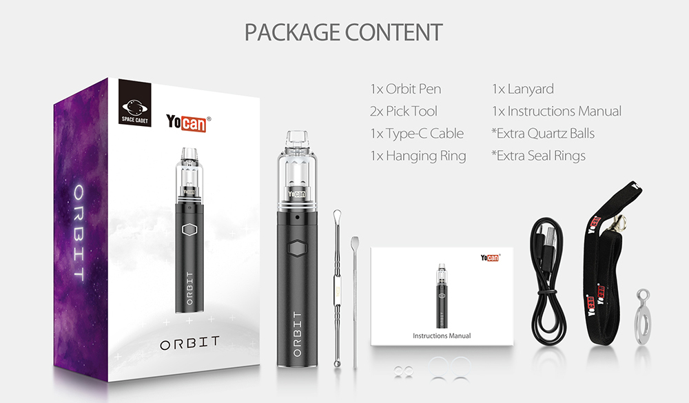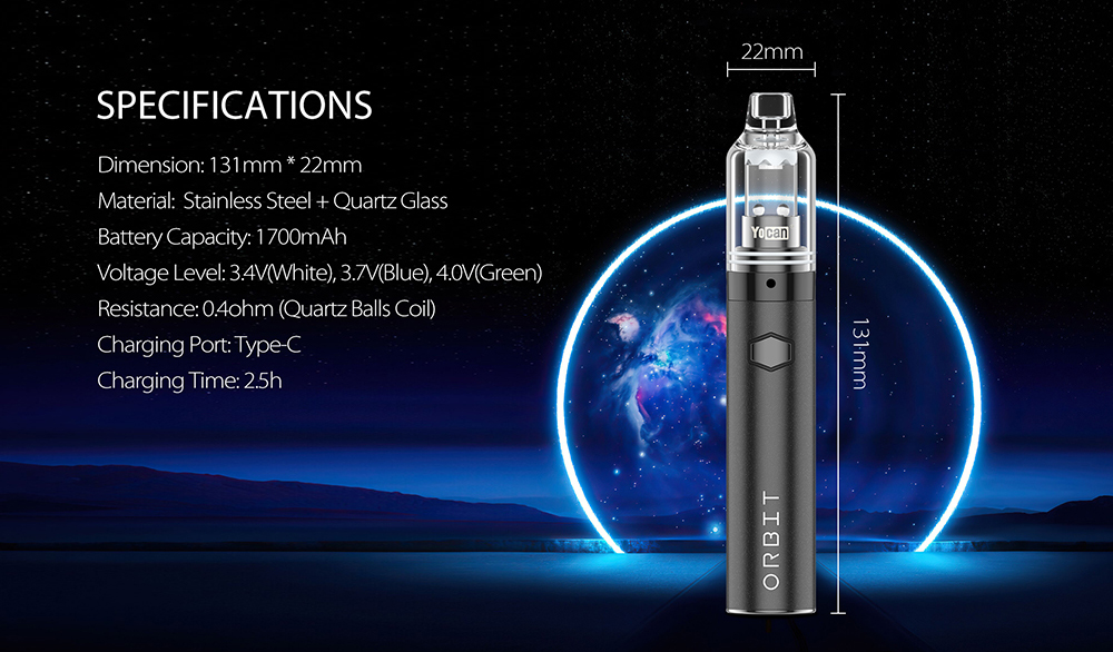 Can’t Take Your Eyes Off This Yocan Orbit Vape Pen Kit With Its Coil-less Quartz Cup At The Helm, Which Tailors Your Vaping Experience By Equipping A Top Vertex Airflow System And Two Quartz Balls.